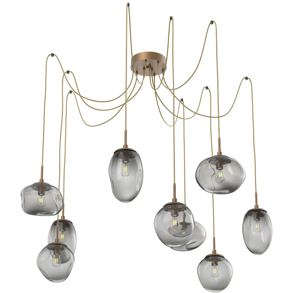 Featuring a standard configuration of all three Nebula artisan blown crystal glass styles, this versatile chandelier enables customization of the placement and height of each pendant. Pair your preferred glass color with either an LED-illuminated cast crystal glass diffuser in a choice of three styles, or with an E26 base that takes one 40W bulb.