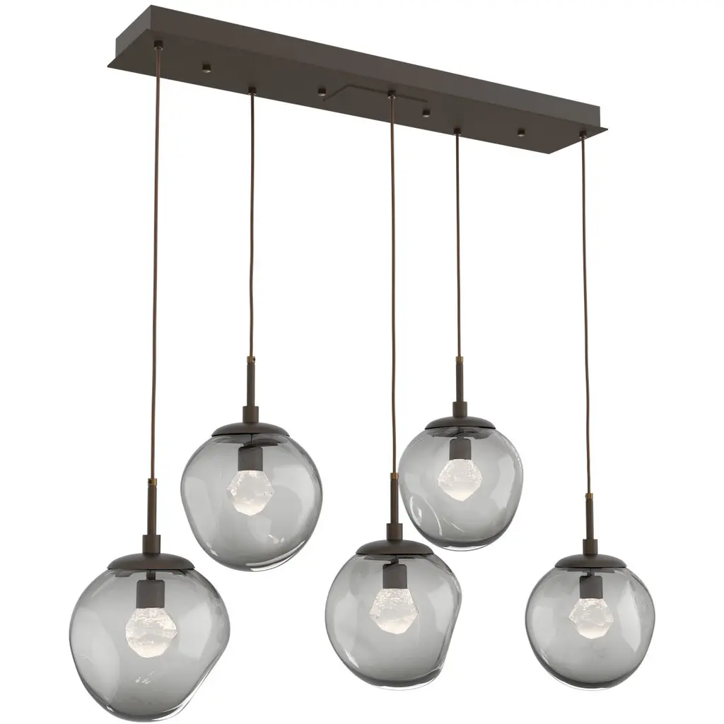 Cosmos Linear Multi-Pendant-5PC-LED-Burnished Bronze-Zircon Inner - Smoke Outer-Cloth Braided Cord-LED 3000K