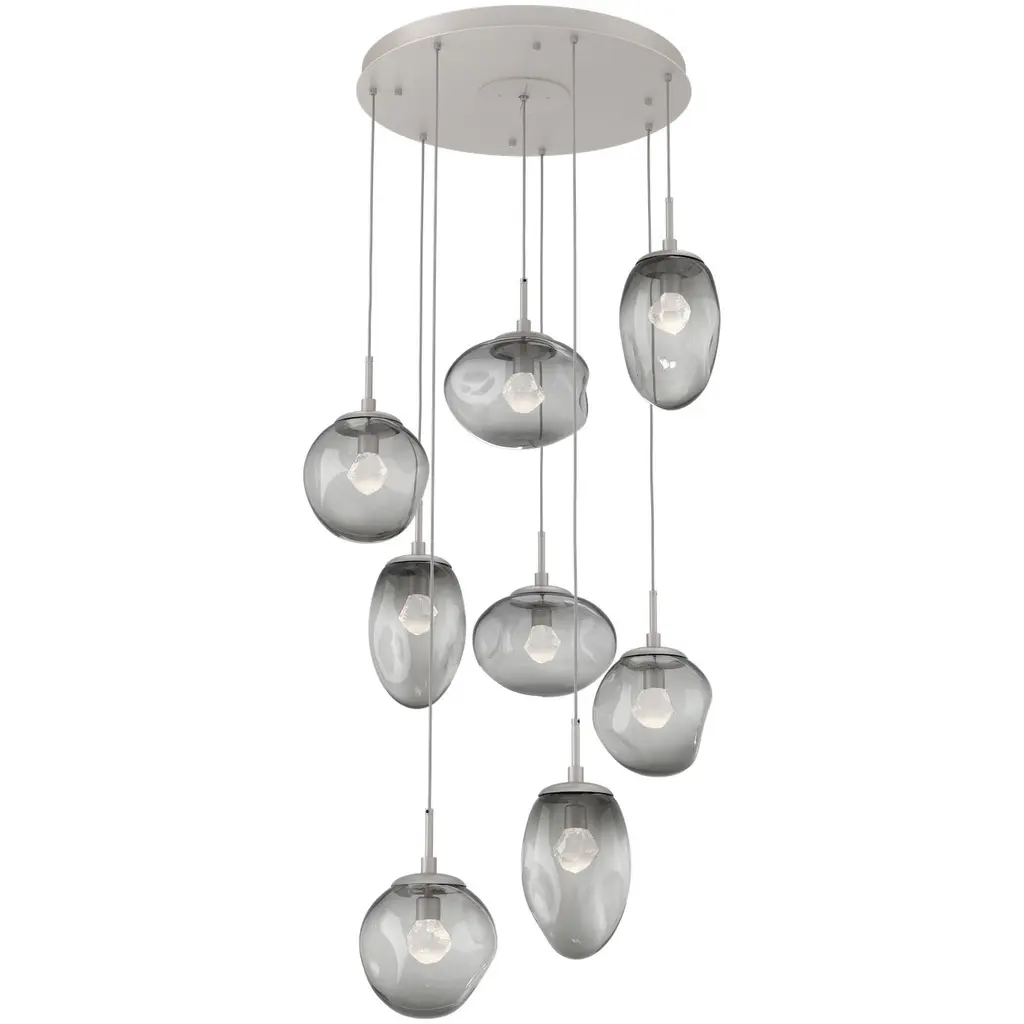 Cosmos Round Multi-Pendant-8PC-LED-Classic Silver-Zircon Inner - Smoke Outer-Cloth Braided Cord-LED 2700K