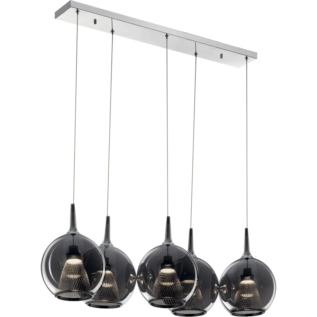 Cosmos Linear Multi-Pendant-5PC-LED-Classic Silver-Zircon Inner - Smoke Outer-Cloth Braided Cord-LED 3000K