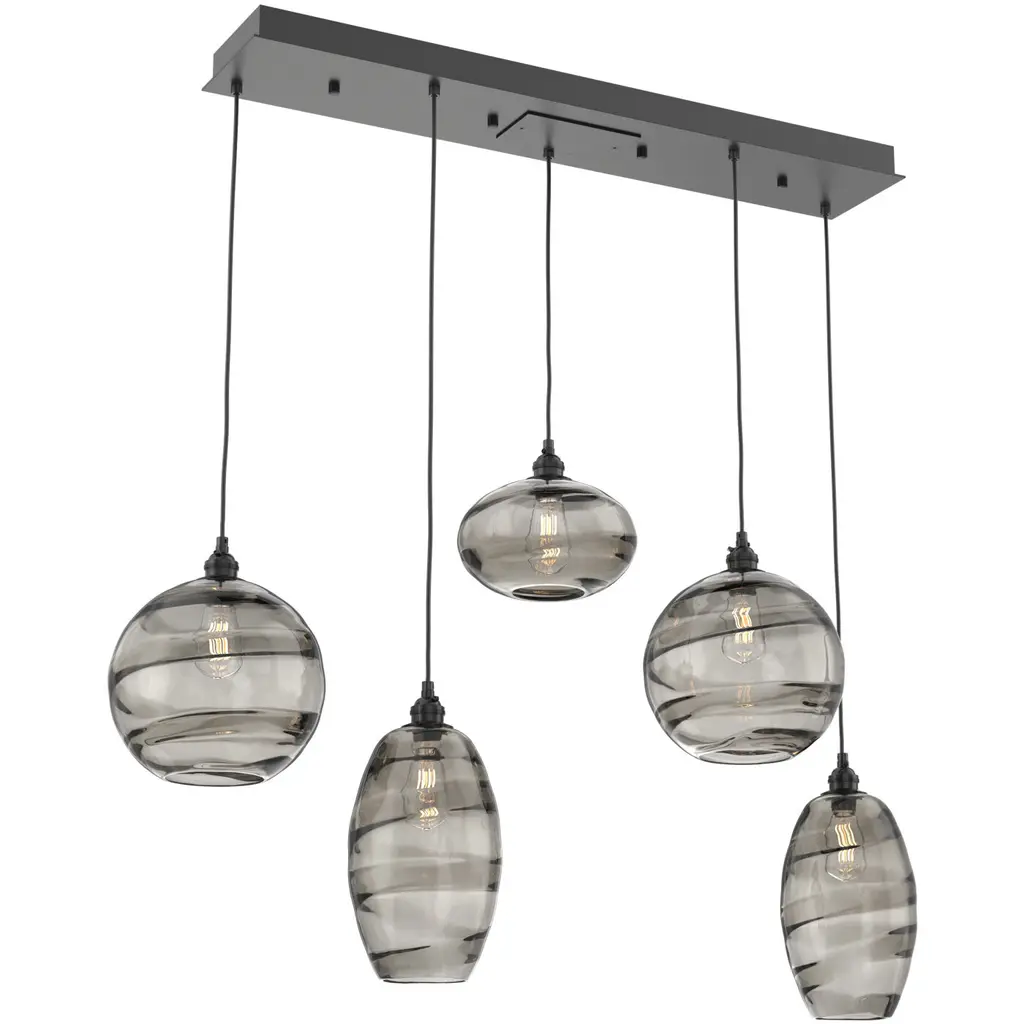 Cosmos Linear Multi-Port-5PC-LED-Matte Black-Zircon Inner - Smoke Outer-Black Cloth Braided Cord-LED