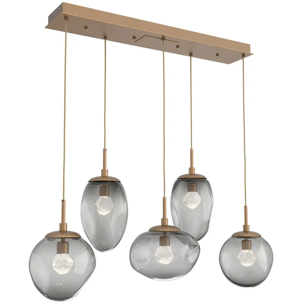 Cosmos Linear Multi-Pendant-5PC-LED-Novel Brass-Zircon Inner - Smoke Outer-Cloth Braided Cord-LED 3000K