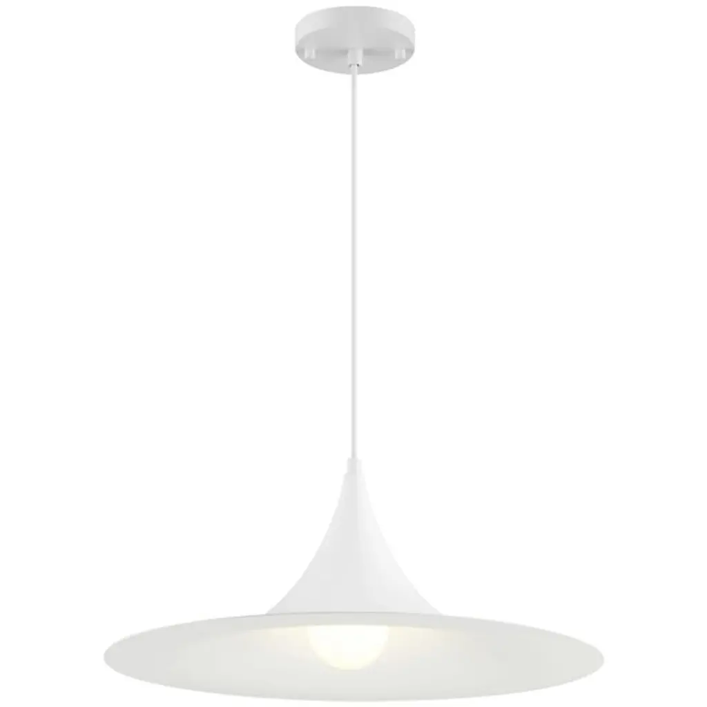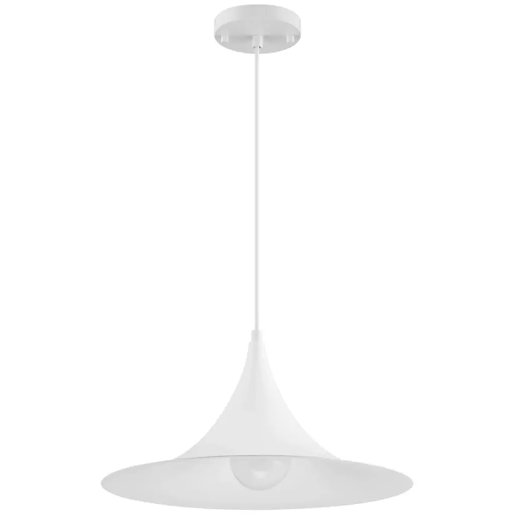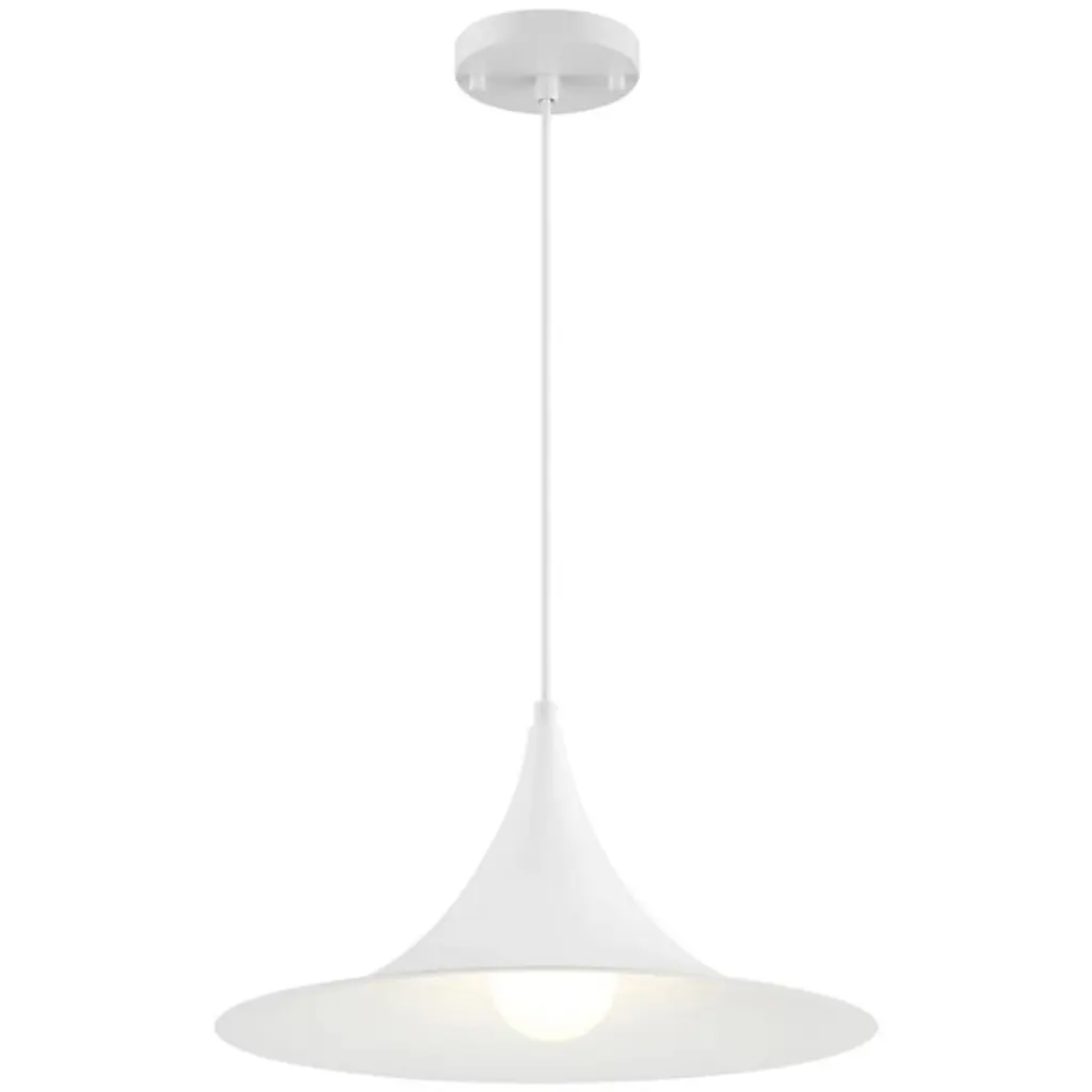Pendant lighting designed with a dramatic flare to add dramatic flair to modern kitchens or dining areas. The Costa Pendant by Access Lighting has a smooth, trumpet-shaped steel shade, which can be hung at the perfect height via the field-cuttable suspension cord. The chosen bulb (not included) sits snugly at the center, with the wide, flat flare of the shade helping to direct vibrant ambient light downward and to the sides.