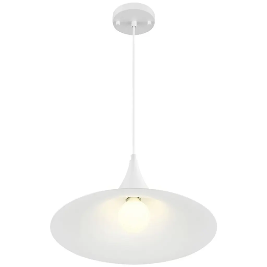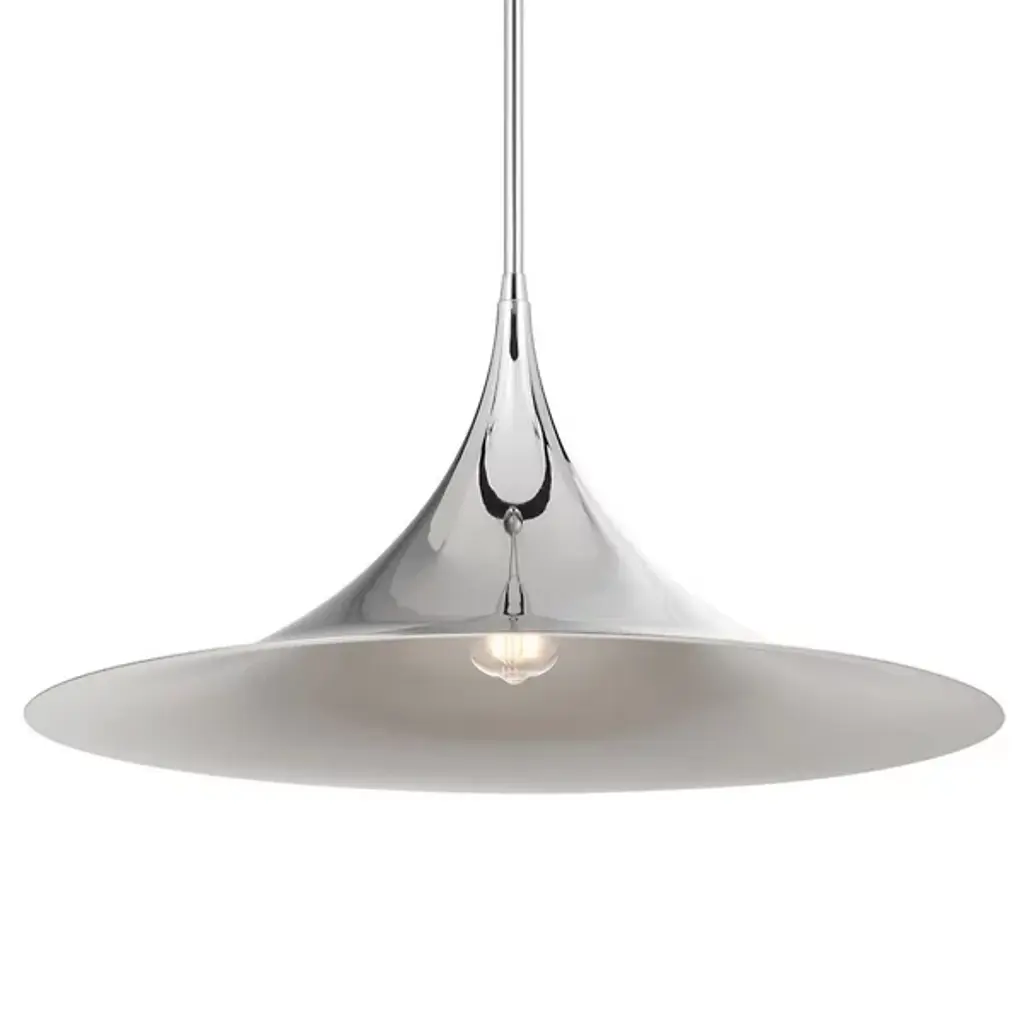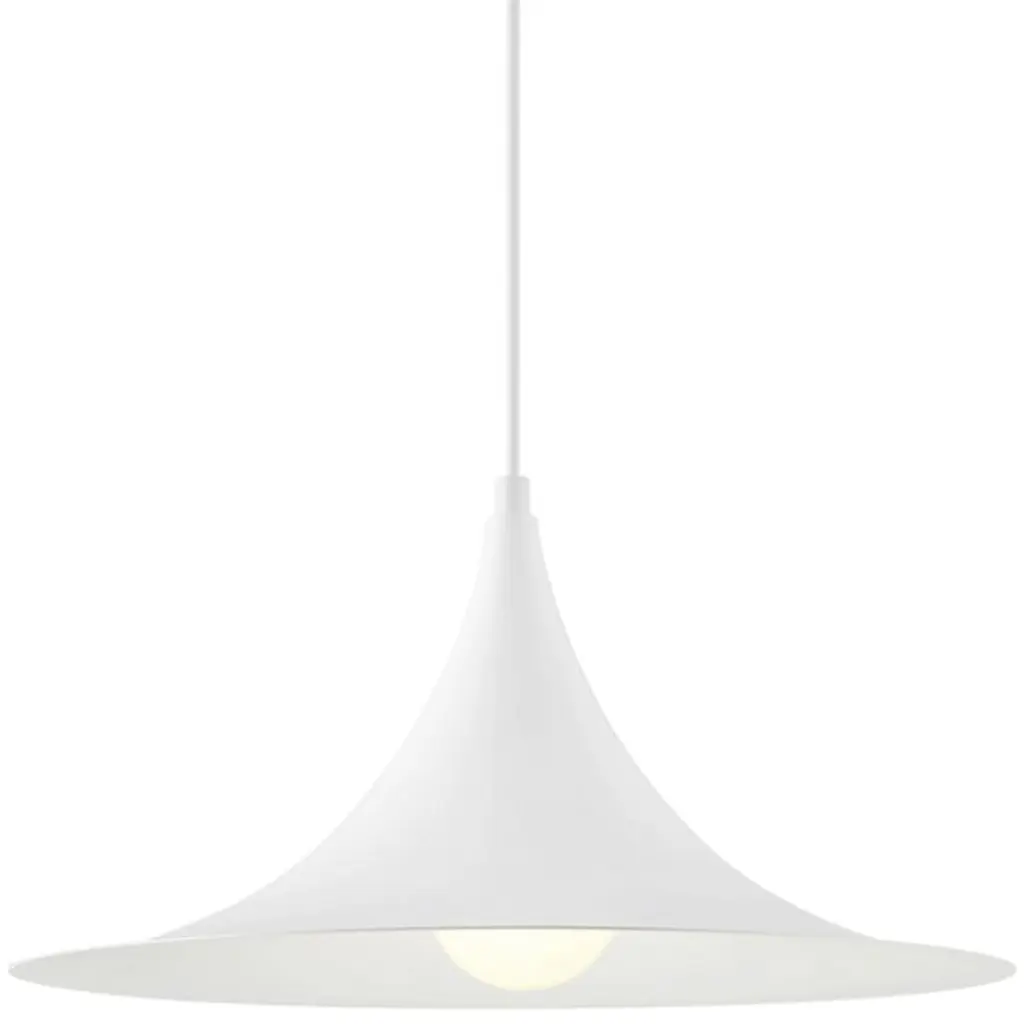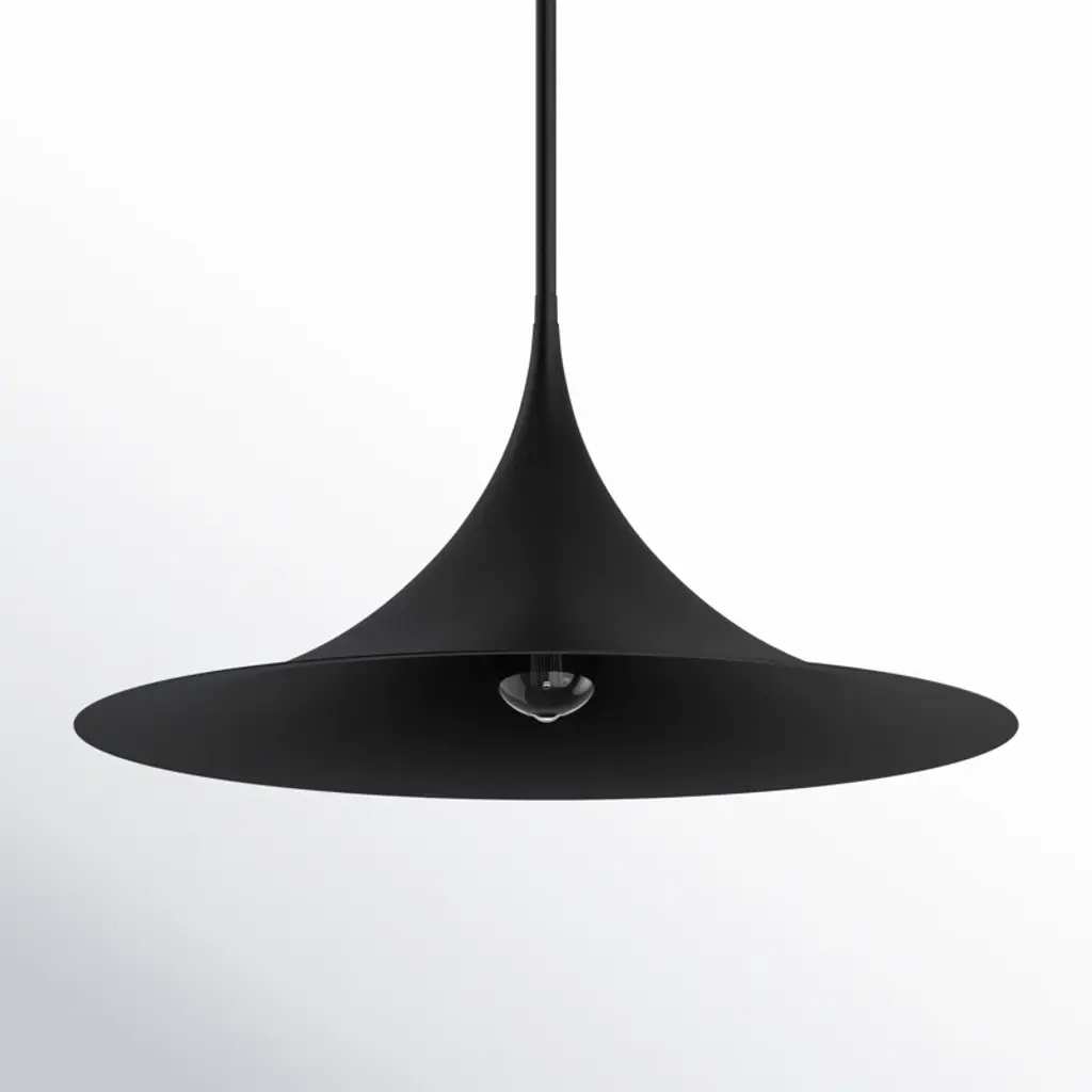 Pendant lighting designed with a dramatic flare to add dramatic flair to modern kitchens or dining areas. The Costa Pendant by Access Lighting has a smooth, trumpet-shaped steel shade, which can be hung at the perfect height via the field-cuttable suspension cord. The chosen bulb (not included) sits snugly at the center, with the wide, flat flare of the shade helping to direct vibrant ambient light downward and to the sides.
