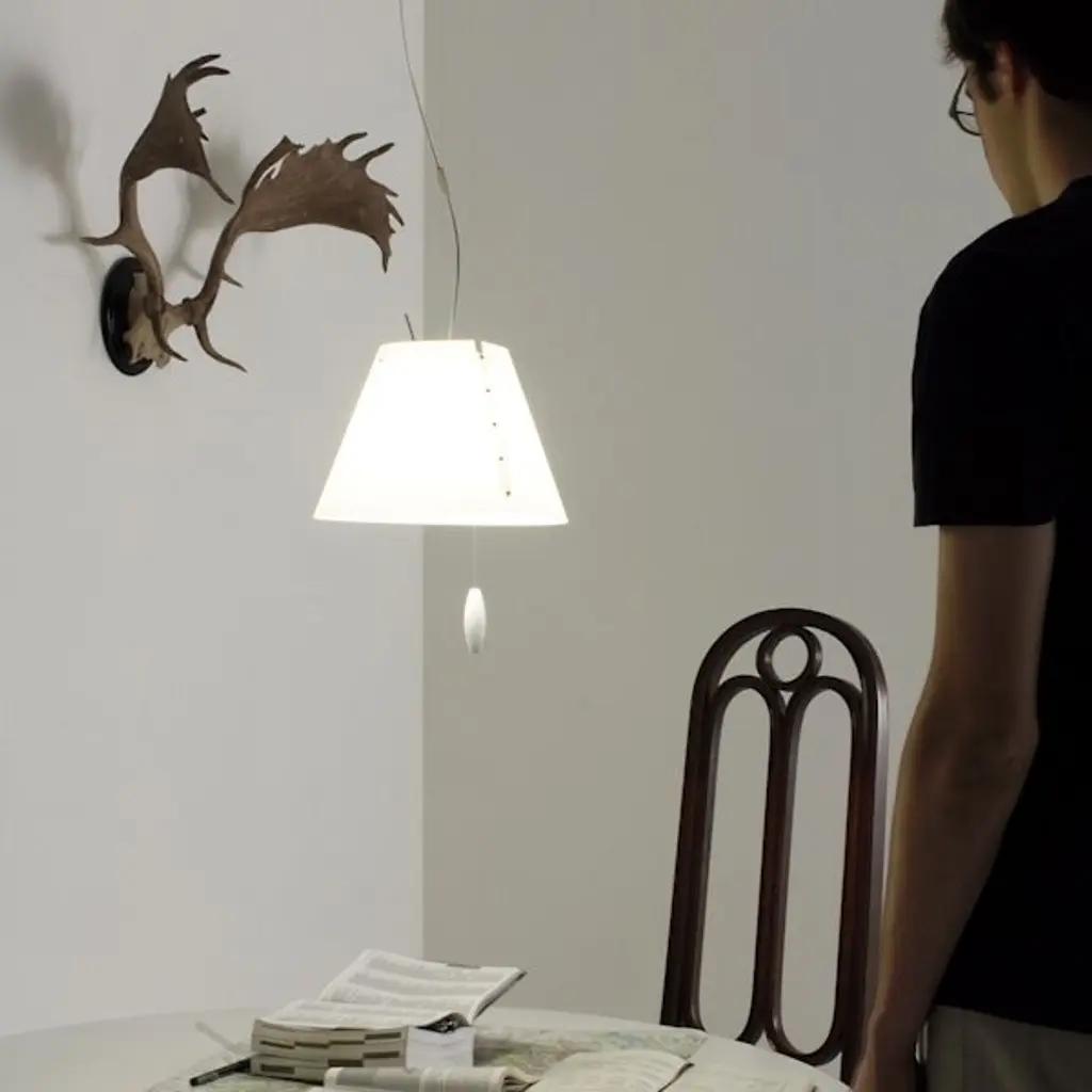 The Costanzina Pendant by Luceplan, designed by Paolo Rizzatto, sends a shower of cheery light to surfaces below and adjusts with a pull on the steel counterweight. Luceplan, headquartered in Milan, Italy, designs and manufactures beautiful, durable products that are environmentally compatible.