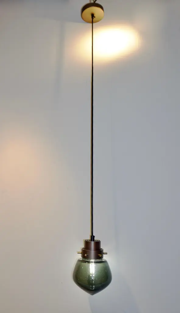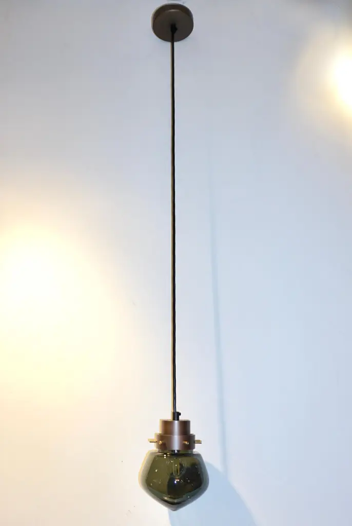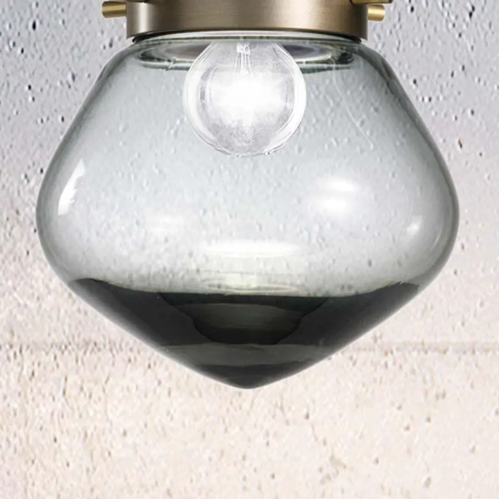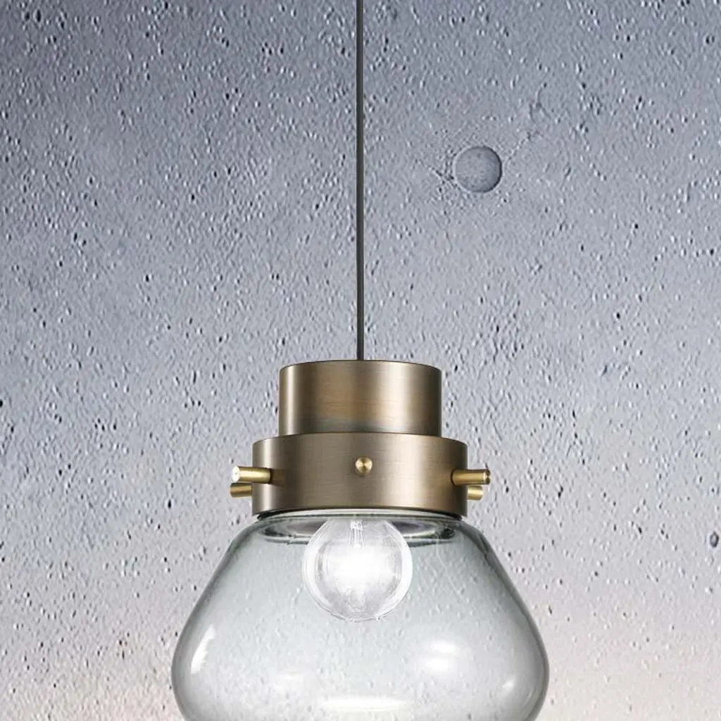Cosulich Interiors & Antiques in collaboration with Delta Contract.A single drop can change the whole scenery.. Italian contemporary romantic pendant in bronze finish, with double cylindric collar that sustains a drop shape smoked glass shade, the thickness of the glass changes from thin to dense at the bottom to create deeper shadows on the tip, suspended on a cable with canopy. Adjustable height. Options for bronze or black lacquer finish as well as combination displays and options for glass in clear.Body height 6.75 in. Options for bronze or black lacquer finish as well as combination displays.Similar design also available as wall light and table lamp.