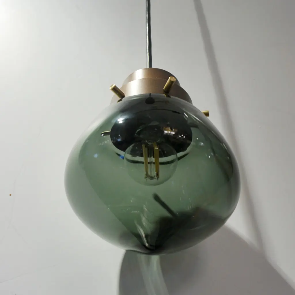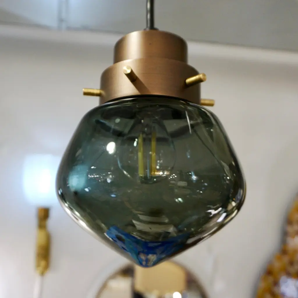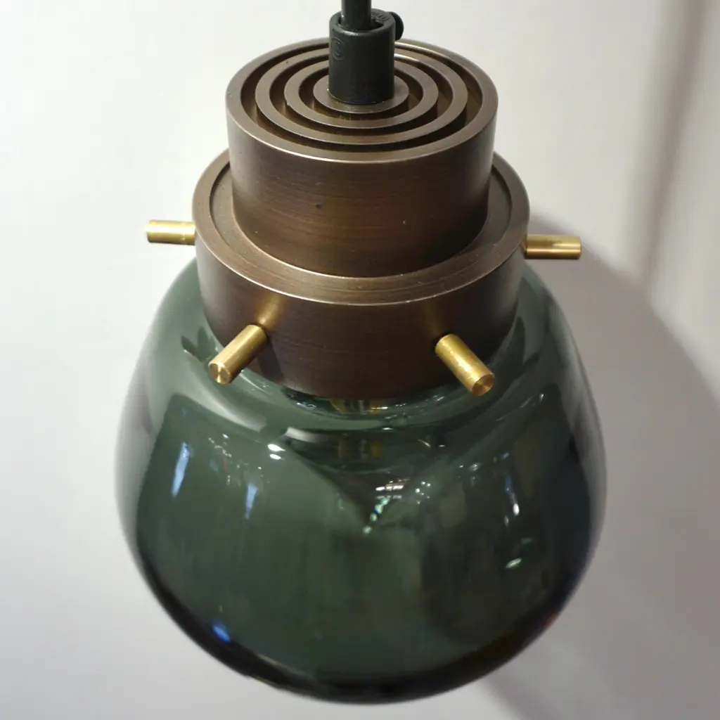 Cosulich Interiors Italian Modern Smoked Aqua Blown Glass Drop Bronze Pendant