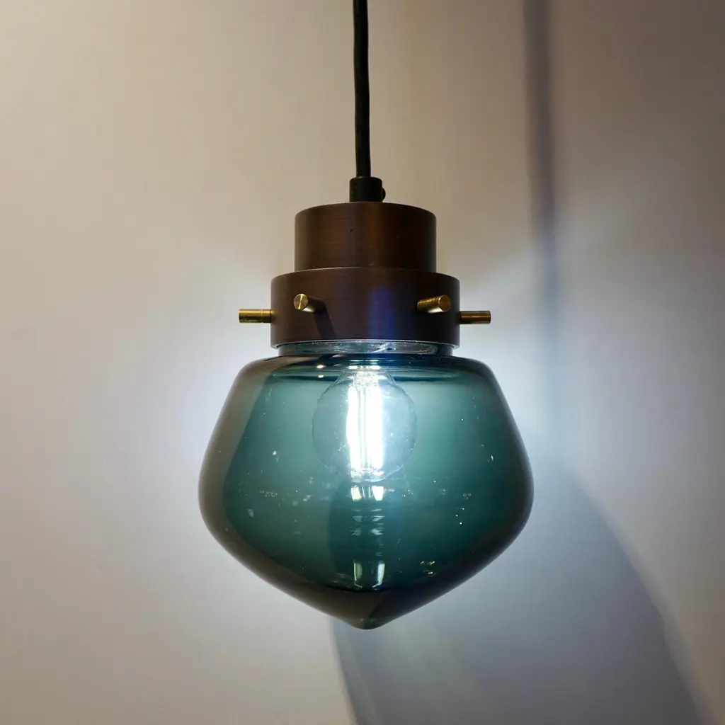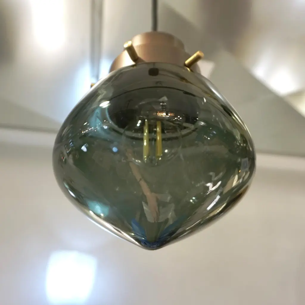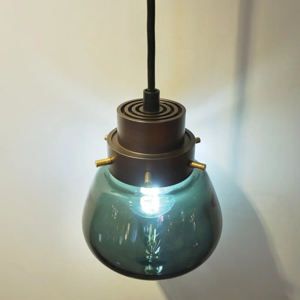 Cosulich Interiors Italian Modern Smoked Aqua Blown Glass Drop Bronze Pendant