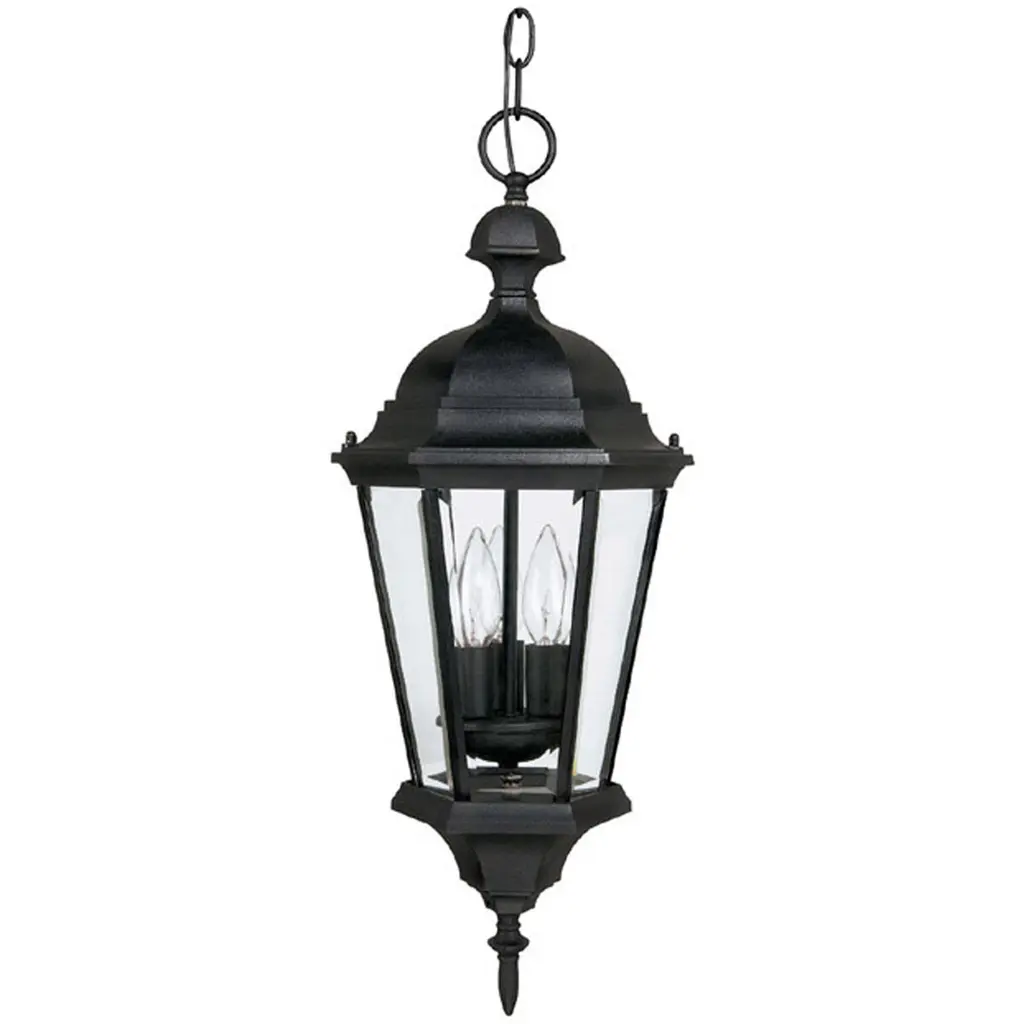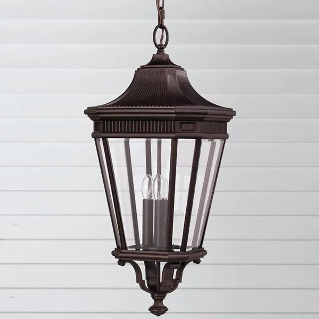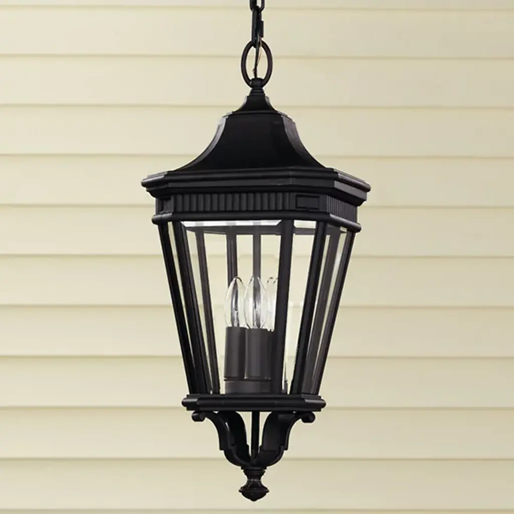 The Generation Lighting, formerly known as Feiss, Cotswold Lane Outdoor Pendant offers simple yet elegant lighting for the front entryway, its early American look strongly influenced by the beautiful English countryside of the Cotswolds. Clear beveled glass offers bright, welcoming light for a variety of home architecture styles.