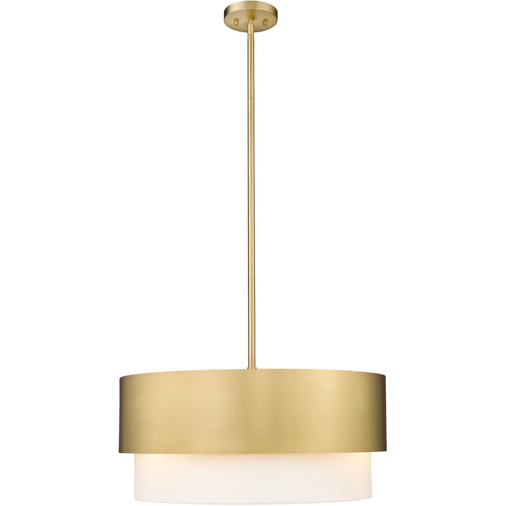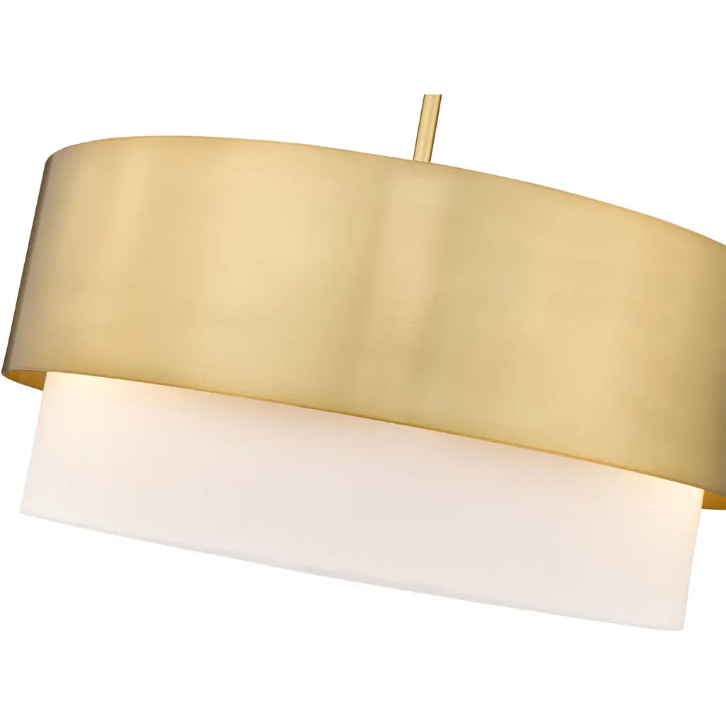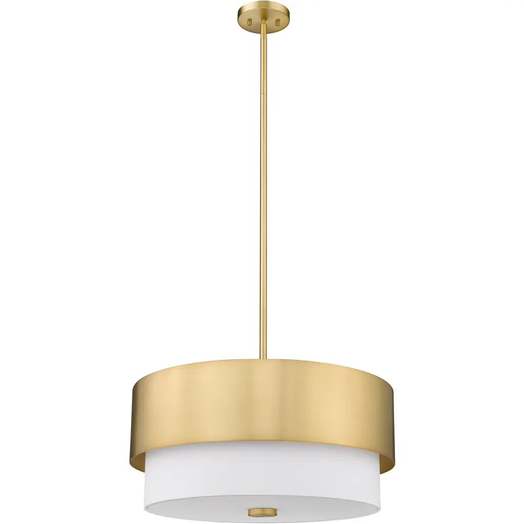 From the Counterpoint collection comes a light fixture with an irresistible blend of Art Deco with Mid-Century Modern style motifs. Simplicity reflects just the right level of sophistication to display versatility in a kitchen, dining room, or foyer, and adds a lush finish that warms any setting. This pendants modern gold finish steel frame and white fabric shade offer the optically pleasing round silhouette trending in todays balanced interior elements, shaping a fixture that becomes a superb source of ambient lighting.