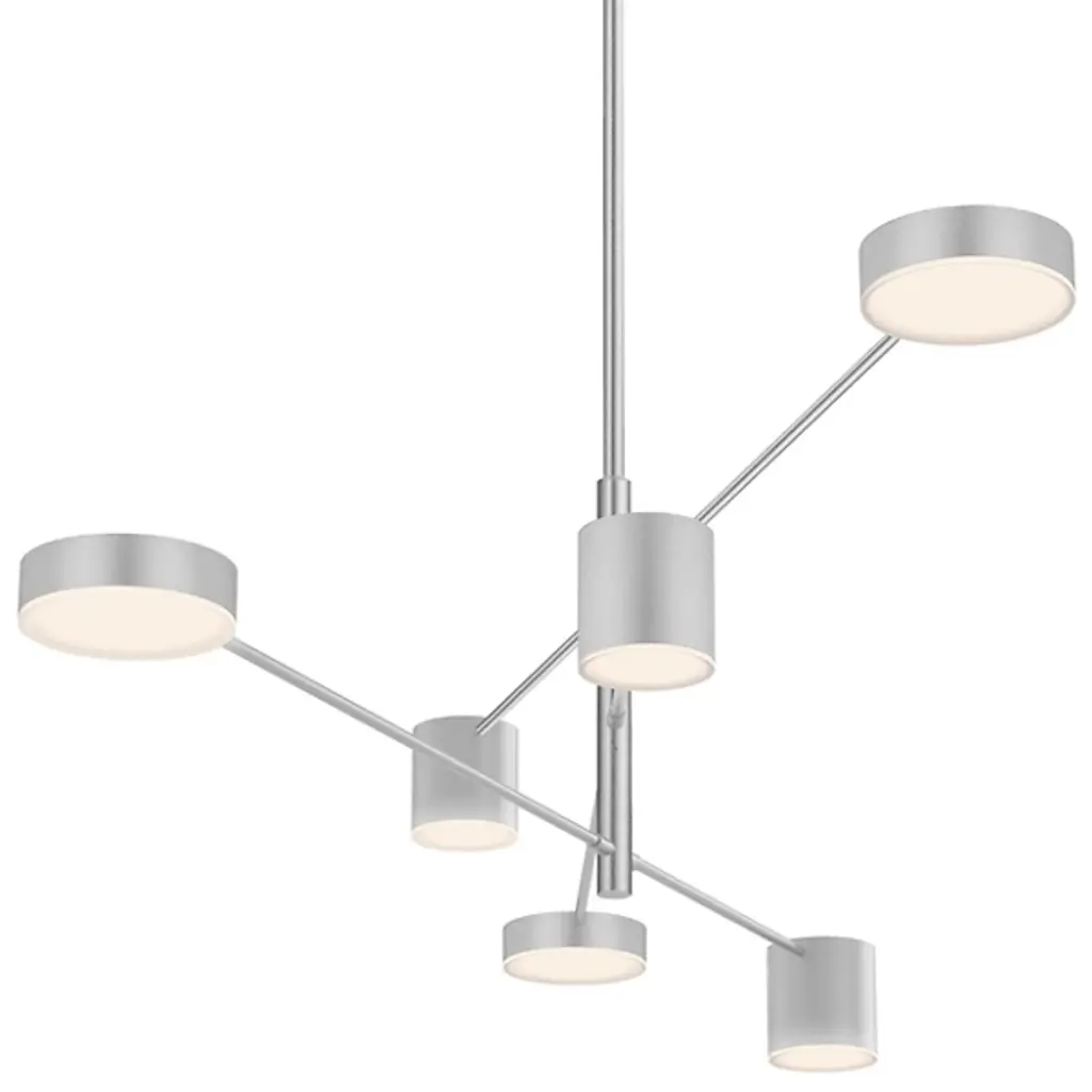 Reminiscent of an art mobile with layers of eye-catching visuals, the Counterpoint LED Pendant by SONNEMAN invites a dramatic luminous presence in a modern home or office setting. Composed of contrasting Aluminum discs and cylinders with Optical Acrylic lenses and integrated LED lighting, the showpiece pendant provides clear, downward illumination over a modern foyer, dining room, kitchen or boardroom.