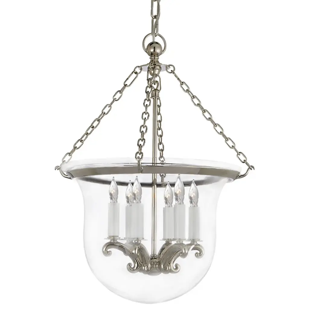 An elegant country bowl filled with gently glowing flame tips makes the Visual Comfort Signature, formerly known as Visual Comfort, Country Bell Jar Pendant a timelessly traditional must-have. Six candelabra bulbs diffuse a warm radiance that fills surrounding spaces with ample illumination. The Country Bell Jar’s slender Clear Glass casing lets you peek into the heart of the fixture, making this pendant a beautiful exhibition piece for any dining or living area.