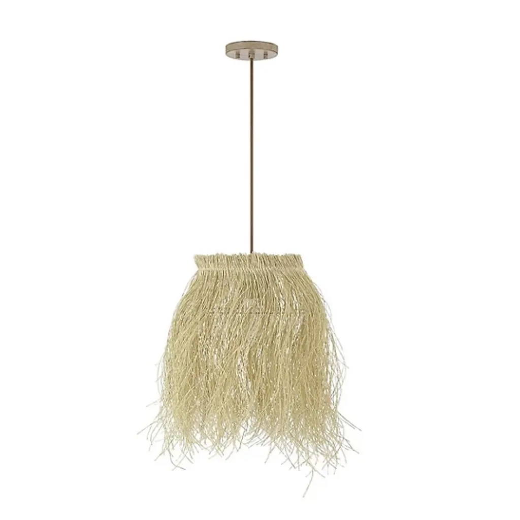 The Courtney Pendant from Alder & Ore brings Bohemian charm and transitional style to your décor. Its shade is composed of grass, forming intricate strands, giving this piece its distinctive texture as well as a natural quality. A metal ceiling canopy is circularly shaped, keeping the pendant balanced while a bright LED creates a pleasant atmosphere for your environment, whether that is an office, a bedroom, or any number of interior settings.