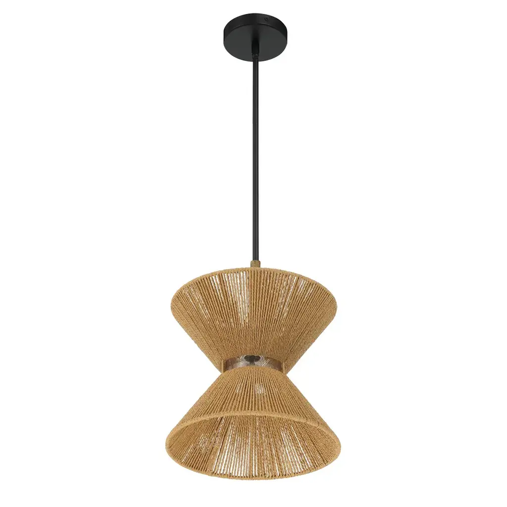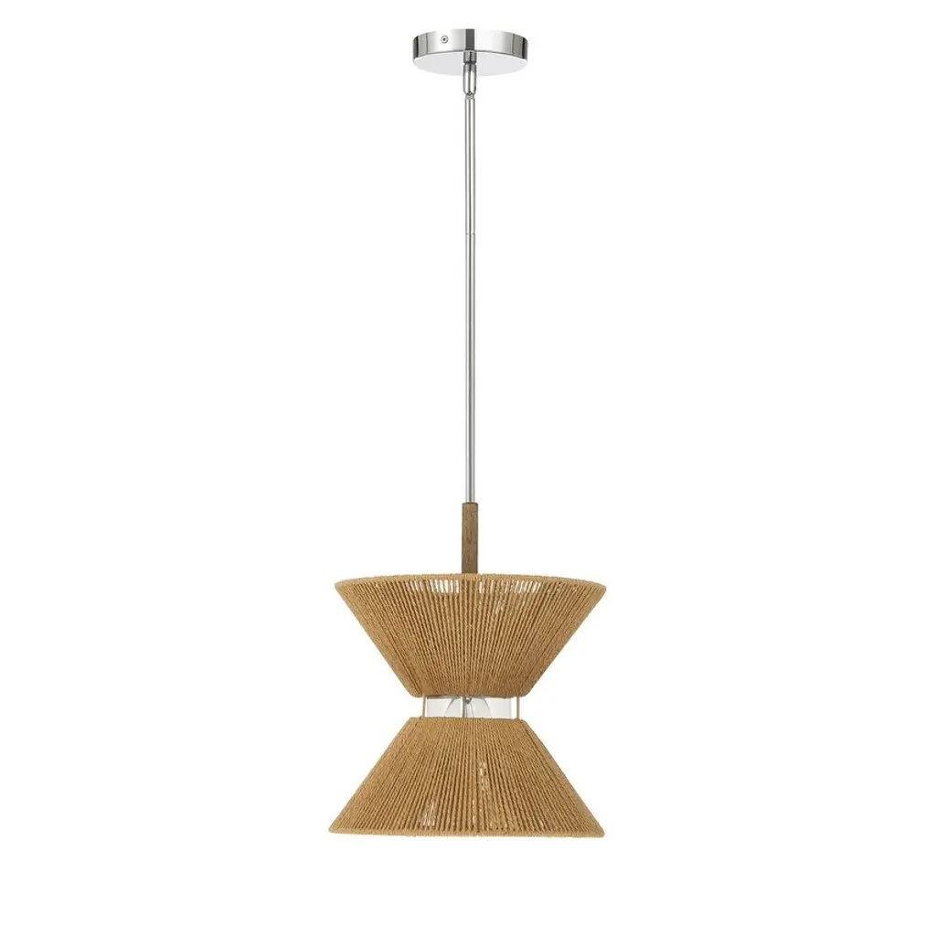 Embrace the timeless beauty of natural materials mixed with beautifully finished metals. Natural hemp rope wrapped frames combined with accentuated hourglass silhouettes create the Serena collection of pendants and sconce ideal for a variety of design and spaces.Features:Dimensions:Electrical Specifications: