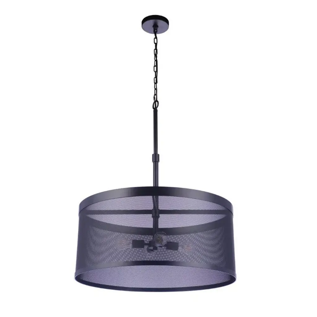 Our Mesh Collection of pendants commands attention without overwhelming the room. Mesh combines with clean drum silhouettes to create a sculptural feel with a minimalist aesthetic. From our single tier four light to our triple tier 12 light, each tier is beautifully illuminated with an array of medium based bulbs(not included). This chain hung collection offers adjustable height and slope mount capability up to 60 degrees.Features:Dimensions:Electrical Specifications: