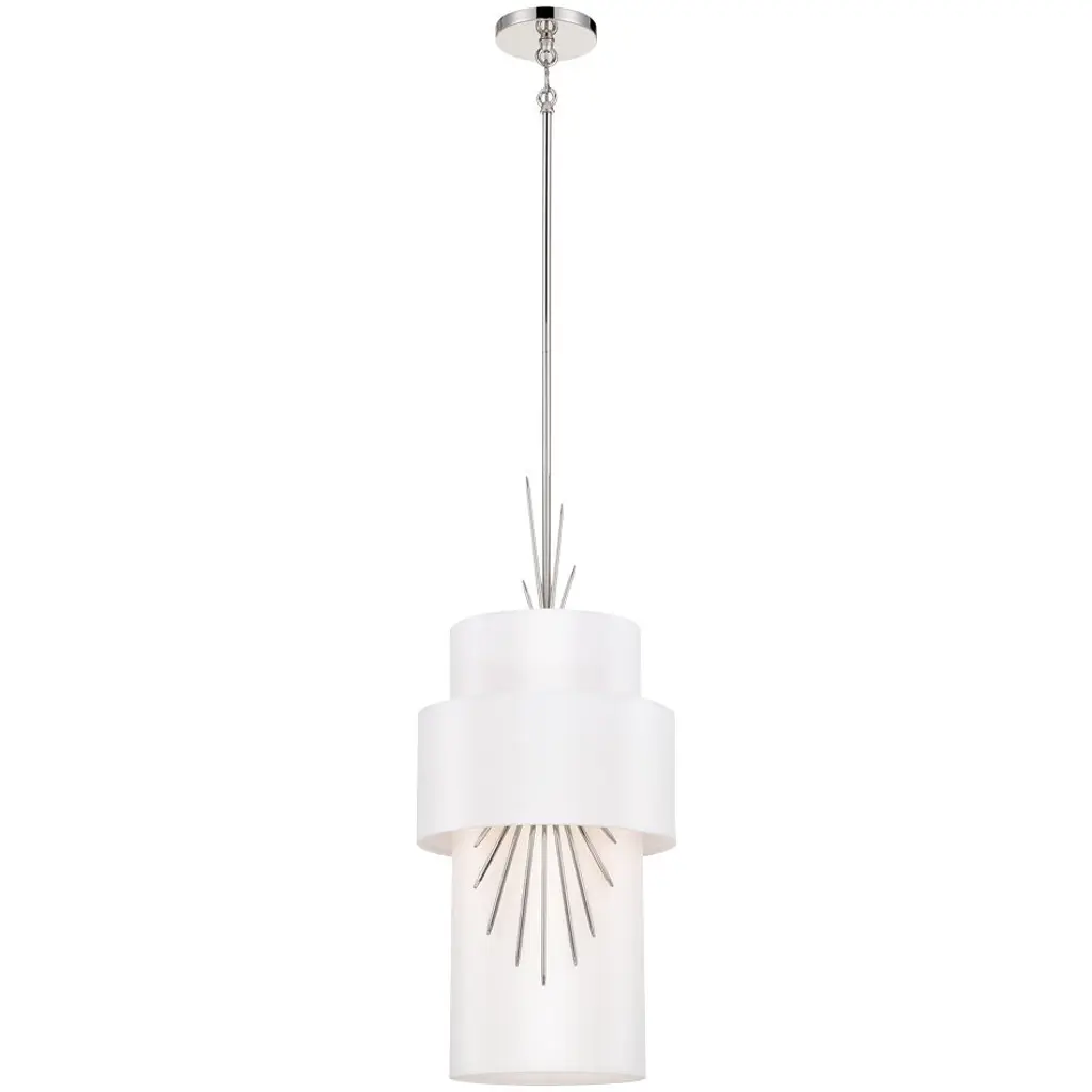 The Melody Collection's repeating inverted arches surrounding a crisp white globe deliver a sense of art deco glam to this timeless contemporary collection. The Melody collection features tiered pendants and an integrated LED Sconce that is dimmable and ADA compliant. White frosted glass - 8 inchd Requires 1 candelabra base, 40 watt bulbs (not included) (3) 12 inch and (1) 6 inch downrod included 1 year limited warranty. Warranty: 1 Year Limited No. of Rods: 4 Canopy Included: Yes Shade Included: Yes Canopy Diameter: 6 x 2.17 Rod Length(s): 12 x 0.5