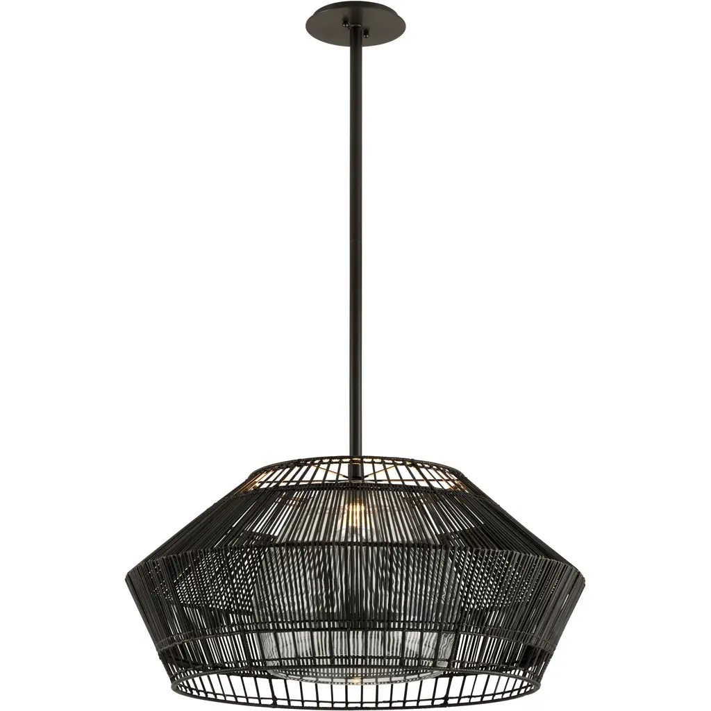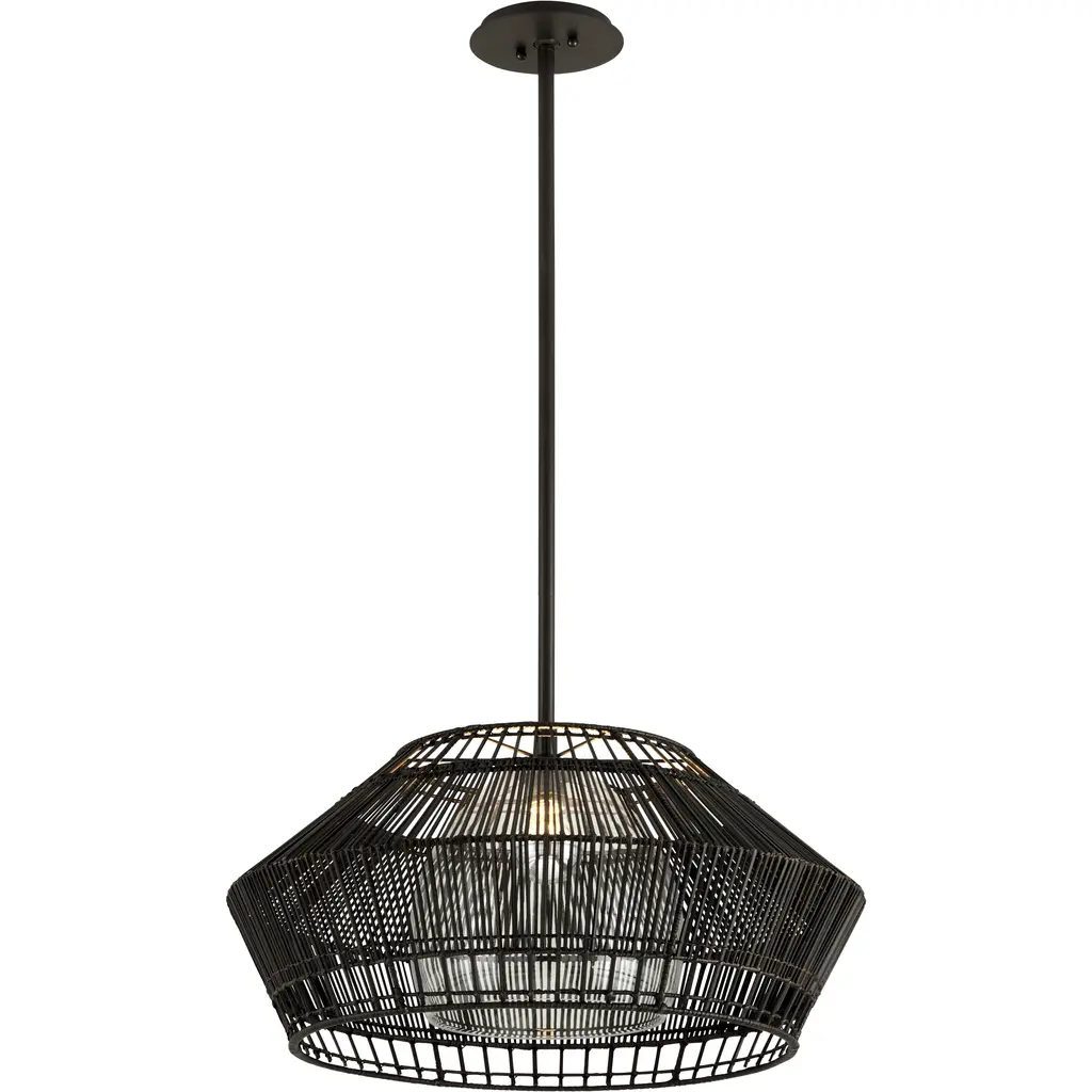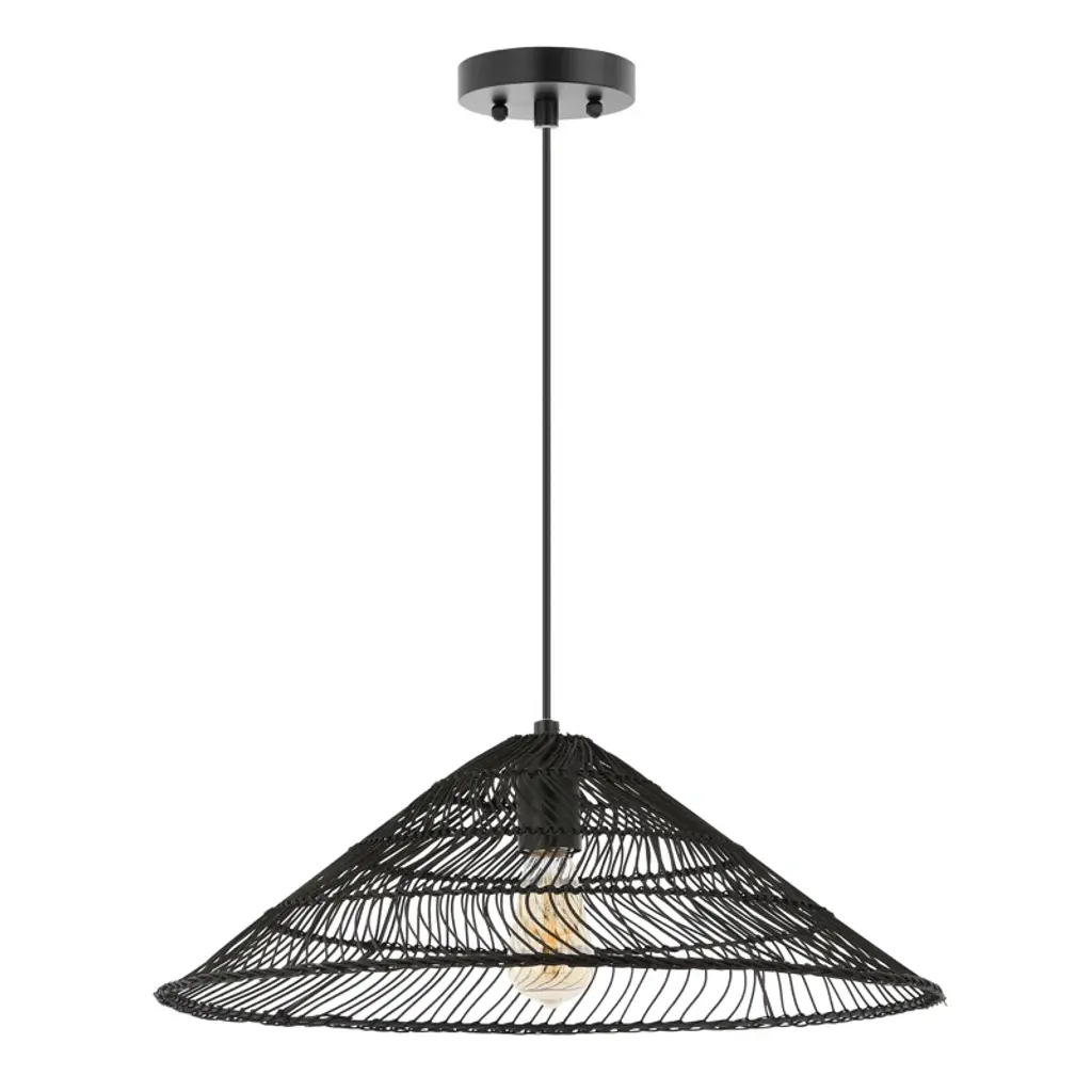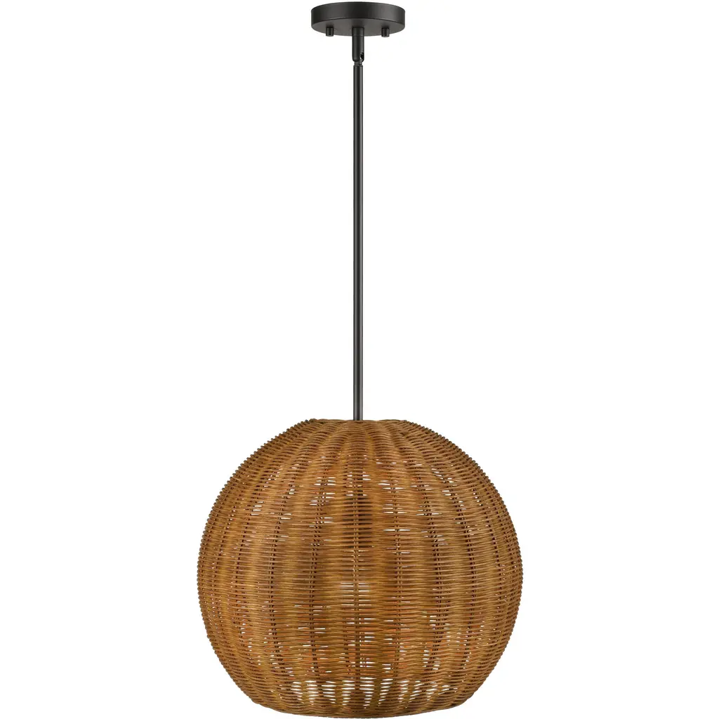 The Natural Pendant Collection combines the warm, earthy tones and texture of real rattan, seagrass and wood with clean transitional silhouettes to create a global experience. Damp rated for indoor or outdoor installation. Black Woven Orb Rattan Shade 16.5" Diameter Damp Rated for Use Indoor or Covered Outdoor 1 x 6W Max., Medium Base Bulb (Not Included) Canopy, 1' adjustable cord & hardware inlcuded