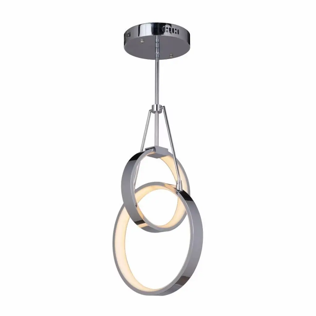 Anillo 2 Ring LED Pendant in Chrome Send your décor into Orbit with the Anillo LED light fixture. Featuring a prominent, three-ring configuration that tricks the eye, this suspended fixture is minimalism in motion. Features: Product Type: Indoor Ceiling Lighting - LED Pendant Finish: Chrome Bulb Included: Yes Bulb Type: LED Material: Aluminum, Steel Warranty: 1 Year Fixture / 3 Years LED