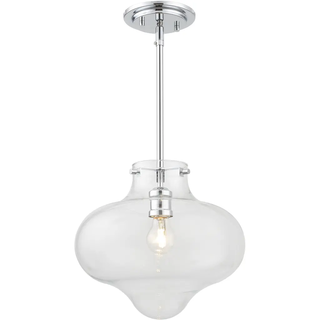 Pendant 1 Light Pendant in Brushed Polished Nickel We've taken our best selling pendant and made it bigger. This clear hammered glass 9" diameter pendant with brushed nickel canopy and rods for adjustable height complements any décor. Features: Product Type: Indoor Ceiling Lighting - Pendant Finish: Brushed Polished Nickel Bulb Included: No Bulb Type: Incandescent Material: Glass, Steel, Warranty: 1 Year