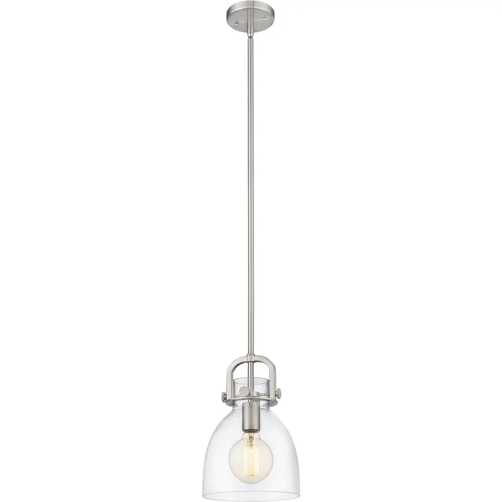 State House 1 Light Mini Pendant w/Cord in Polished Nickel with Clear Glass Features: Product Type: Indoor Ceiling Lighting - Mini Pendant w/Cord Finish: Polished Nickel Bulb Included: No Bulb Type: Incandescent Material: Brass Warranty: 1 Year Material: Aluminum, Finish Color: Polished Nickel, Width: 6", Height: 8.88", Length: 6", Depth: 6", Hanging Method: Cord, Lamping Type: LED, Number Of Bulbs: 1, Wattage: 60 Watts, Dimmable: No, Moisture Rating: Dry Rated