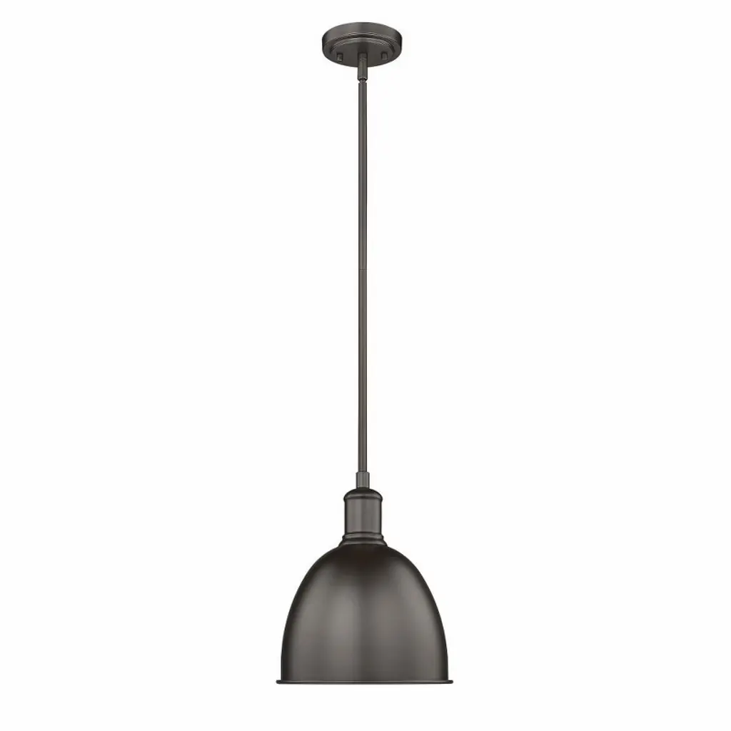 Timarron 1 Light Mini Pendant in Aged Bronze Brushed Boasting a stellar sense of industrial chic style, the Timarron is a contemporary showstopper. From chandeliers to pendants, sconces, and beyond, find a fixture for any room in your home. With hammered metal shades and visually strong lines, the design is light years away from the rest. Features: Product Type: Indoor Ceiling Lighting - Mini Pendant Finish: Aged Bronze Brushed Bulb Included: No Bulb Type: Incandescent Material: Steel Warranty: 1 Year