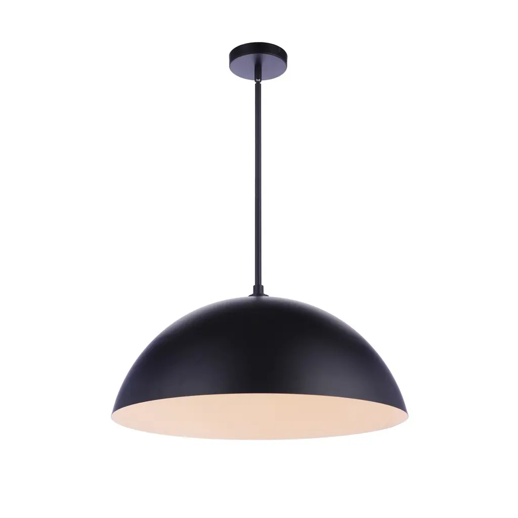 Part of our Sculptural Statements Collection, this adjustable height rod-hung sleek 23.25" dome features an integrated dimmable 30W LED disk and damp rated for use indoors or outdoors. These pendants can be mounted on a flat or sloped ceiling up to 60 degrees.Features:Dimensions:Electrical Specifications: