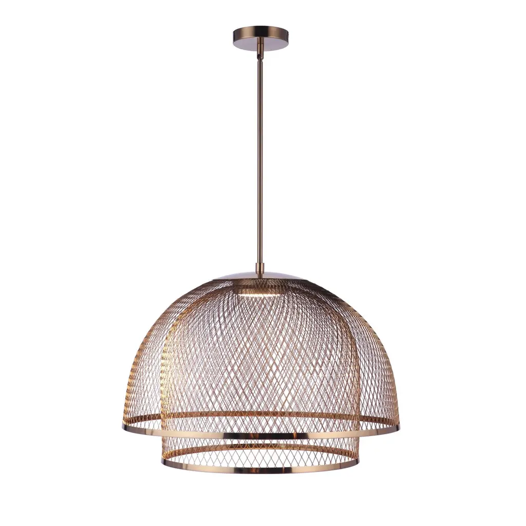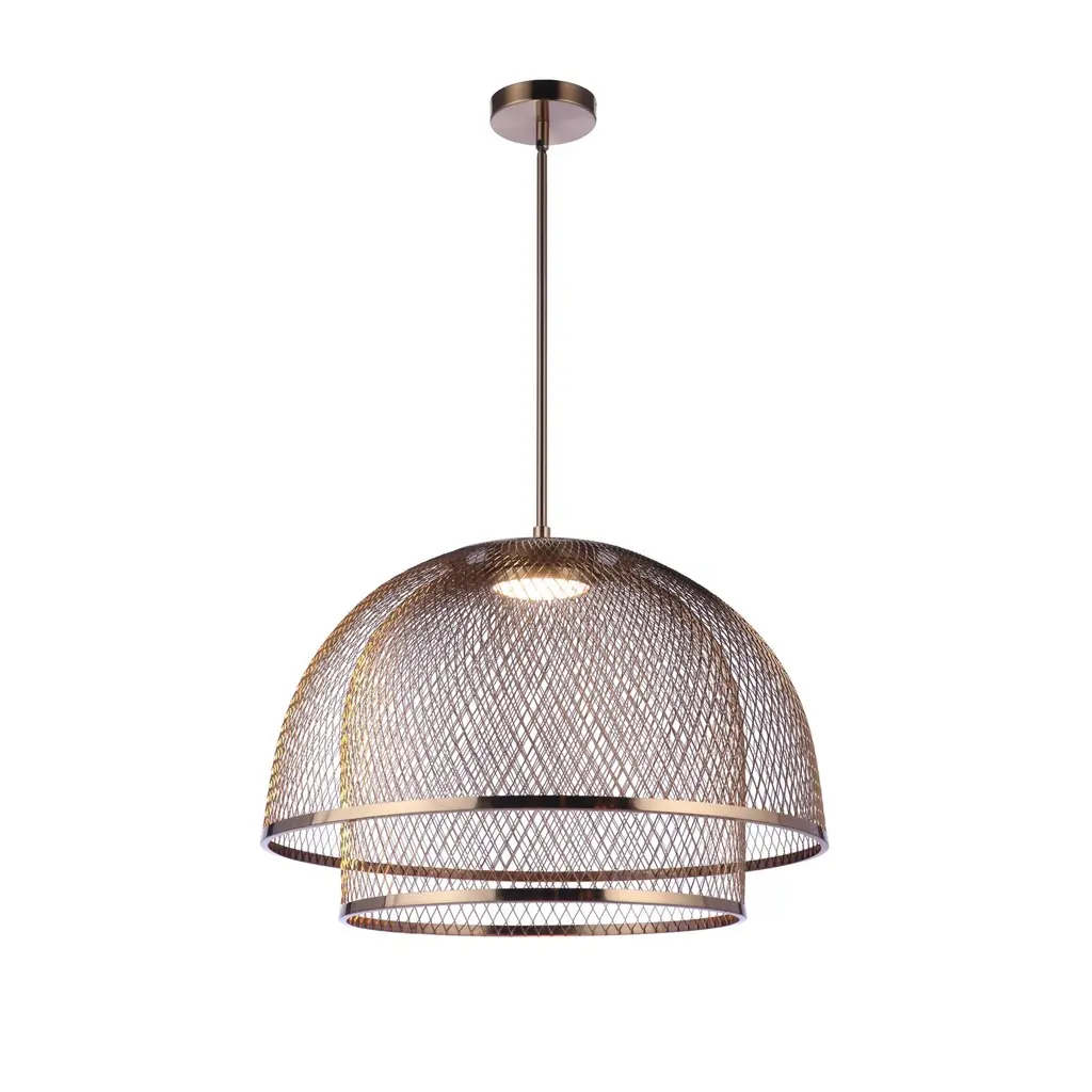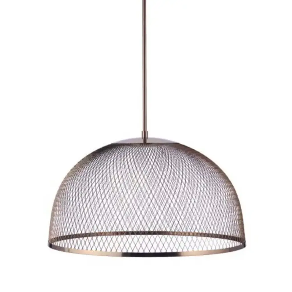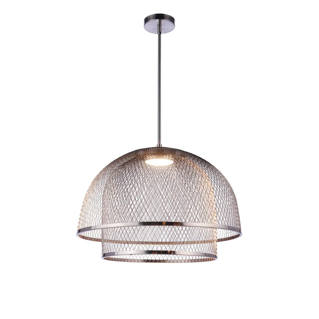 Make a visual statement with our Sculptural Statements double mesh dome pendant available in three finishes. Embracing the best of the minimaluxe trend, this pendant combines the beautiful texture of wide open mesh with a large 24.25" dome silhouette illuminated with an almost hidden integrated dimmable 18W LED disk.Features:Dimensions:Electrical Specifications: