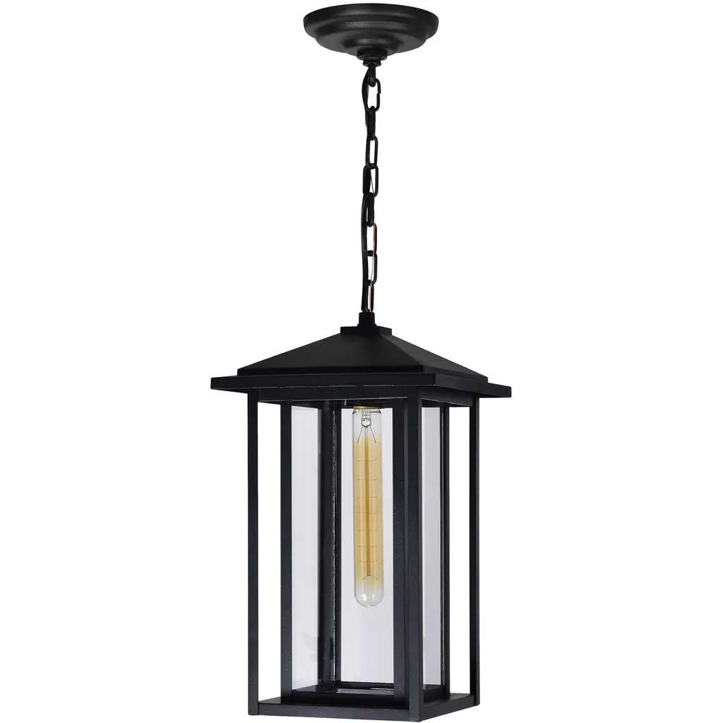 Bring style, safety, and warm illumination to your homes exterior with the Crawford 1-Light Black Outdoor Hanging Lantern. Featuring a classic black coated metal frame with glass panels, this weather-resistant fixture is perfect for pairing with filament bulbs to create a soft, inviting glow. Ideal for patios, gardens, and front porches, it combines practical functionality with timeless elegance to enhance your outdoor living space.