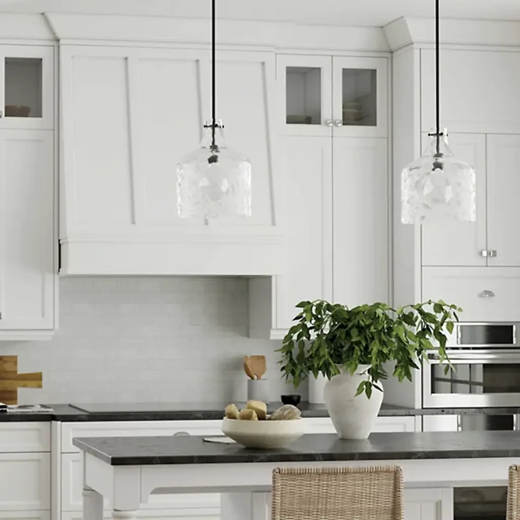 The Crawford Pendant from Capital Lighting makes a graceful first impression with brief curves and a touch of detail. The pendant's shortlist of materials and shapes packs a visual punch. The thoughtful arrangement of these materials and shapes makes it a transitional design with an urban and industrial character. As a slim pendant, it looks good out in the open space on its own or in series over a table. It draws a charming silhouette in the air with a soft-curved glass shade. The clear seeded glass shade delights up close with fine texture. The textural elements transform into fine highlights as the lone bulb inside pushes out a warm ambient glow.