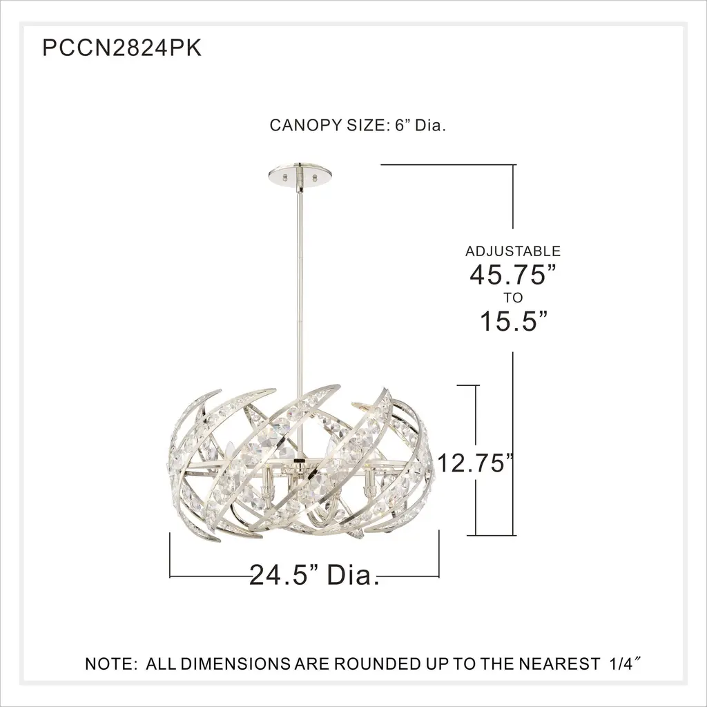 Crescent 6 Light 25 Inch Polished Nickel Pendant Ceiling Light