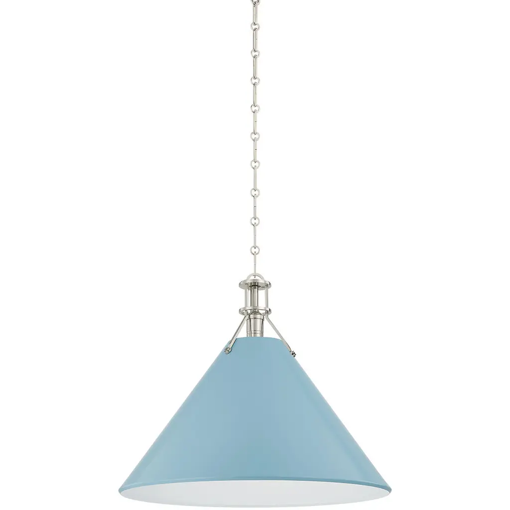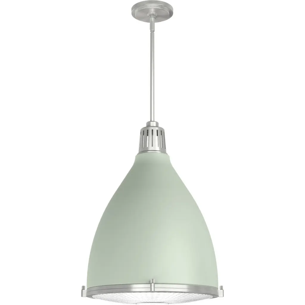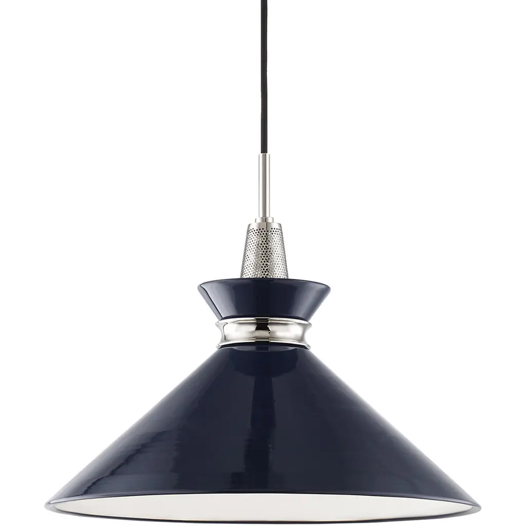 The contrast of the ceramic shade and the gleaming metallic trim adds contemporary flair to this pendant's Mid-Century Modern silhouette. Because it's damp rated, you can hang the pendant in a bathroom as well as over a dining table, in a foyer, or just about anywhere else in your home.