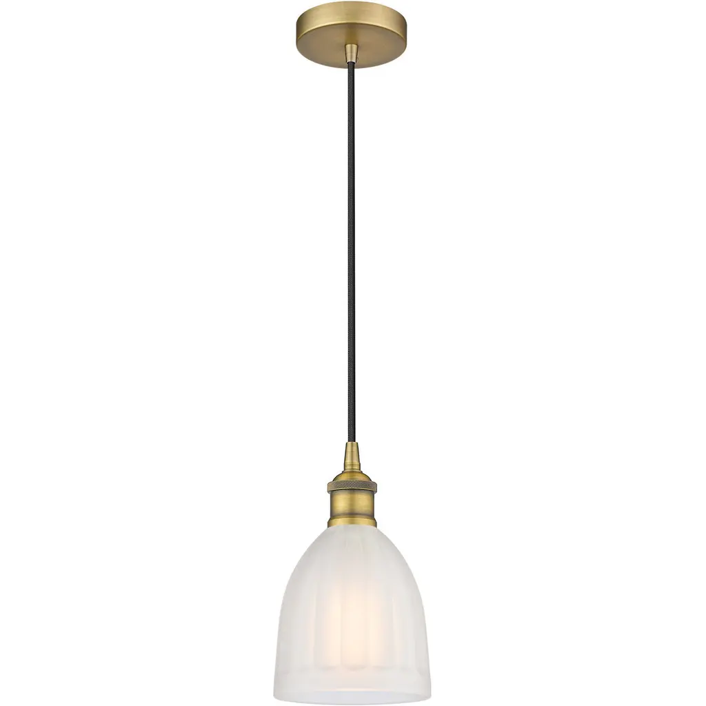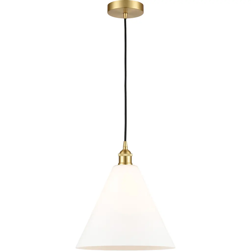 The contrast of the ceramic shade and the gleaming metallic trim adds contemporary flair to this pendant's Mid-Century Modern silhouette. Because it's damp rated, you can hang the pendant in a bathroom as well as over a kitchen island, in a foyer, or just about anywhere else in your home.
