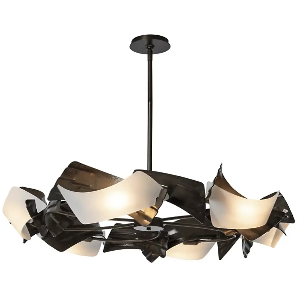Introducing the Crest 6-Light Circular Pendant, a breathtaking addition to Hubbardton Forge's collection. Painstakingly crafted from steel and glass, this pendant features a unique abstract shape. The light fixture is equipped with a replaceable bulb system, allowing you to easily refresh the bulb as needed. The pendant's ring-like design gives a contemporary feel and adds a touch of elegance to any room. As part of the Crest collection, the pendant is perfect for living rooms, dining areas, and bedrooms.