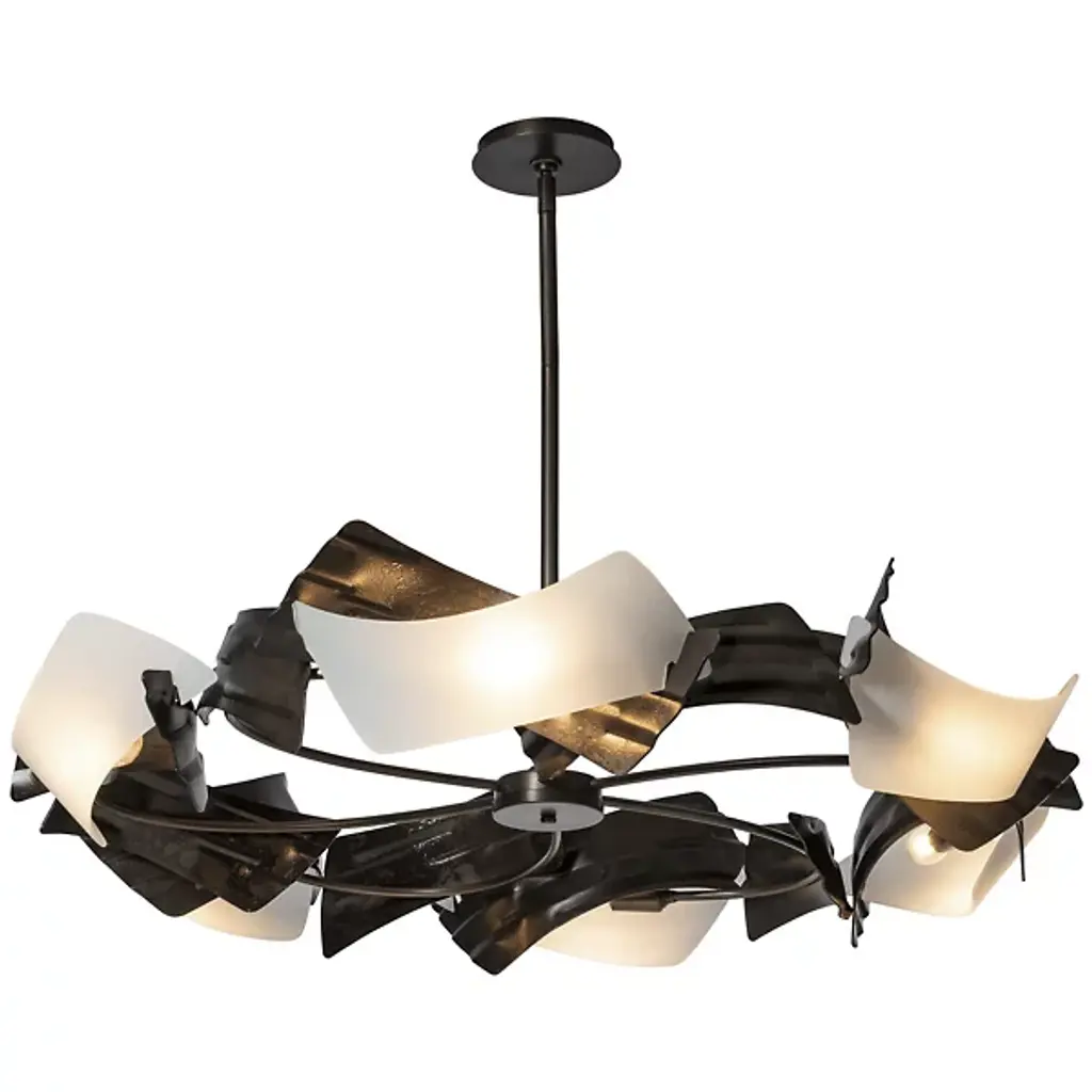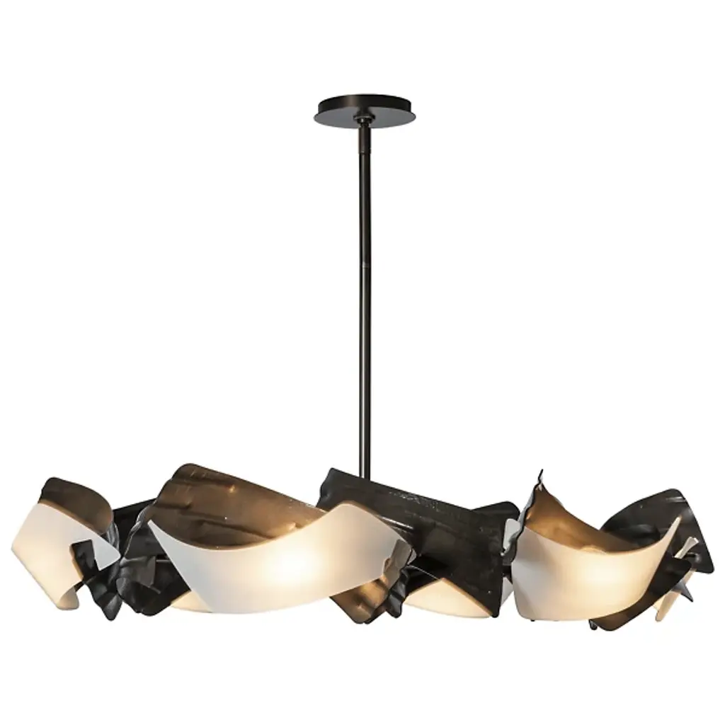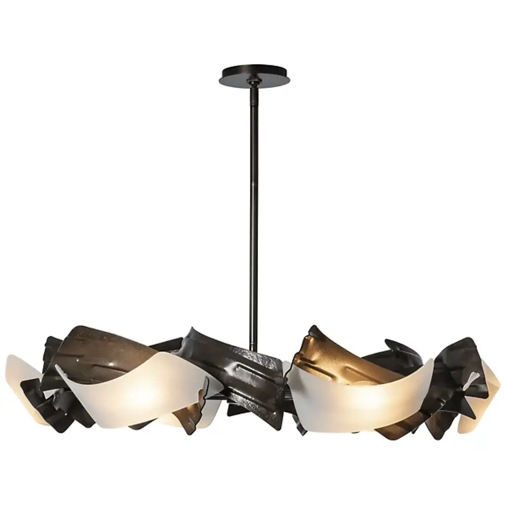 Introducing the Crest 6-Light Circular Pendant, a breathtaking addition to Hubbardton Forge's collection. Painstakingly crafted from steel and glass, this pendant features a unique abstract shape. The light fixture is equipped with a replaceable bulb system, allowing you to easily refresh the bulb as needed. The pendant's ring-like design gives a contemporary feel and adds a touch of elegance to any room. As part of the Crest collection, the pendant is perfect for living rooms, dining areas, and bedrooms.