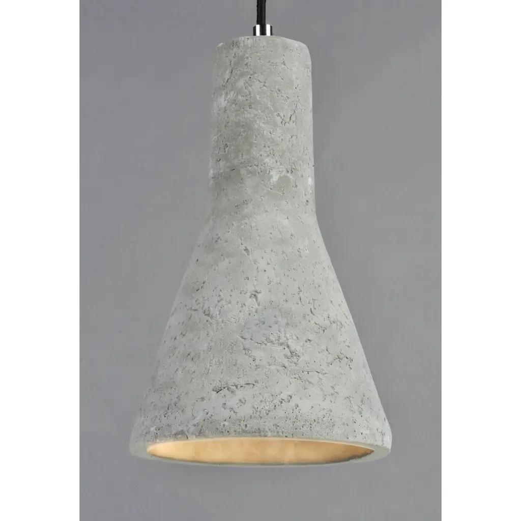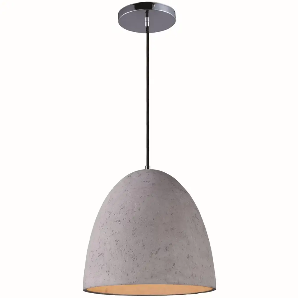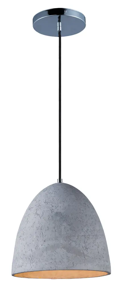 Pendants molded in natural Gray finish concrete cement provide a unique urban contemporary design element Metal Polished Chrome hardware contrasts beautifully with the black fabric covered wire. Powerful and efficient illumination is provided by included GU10, 3000K LED bulbs.