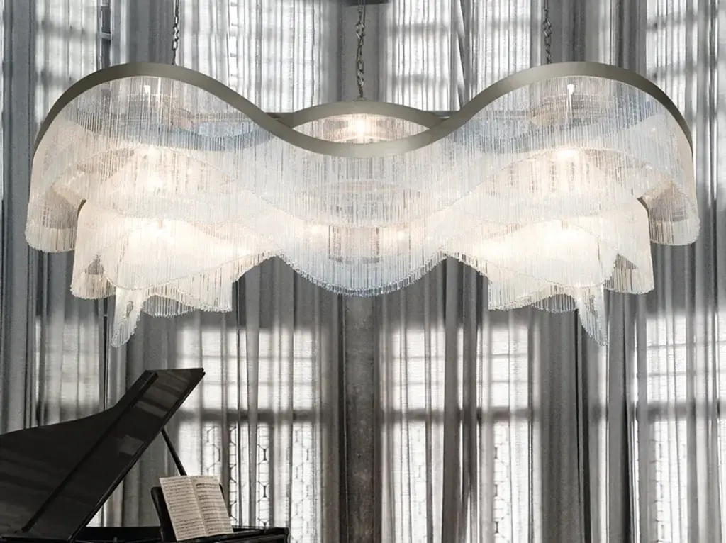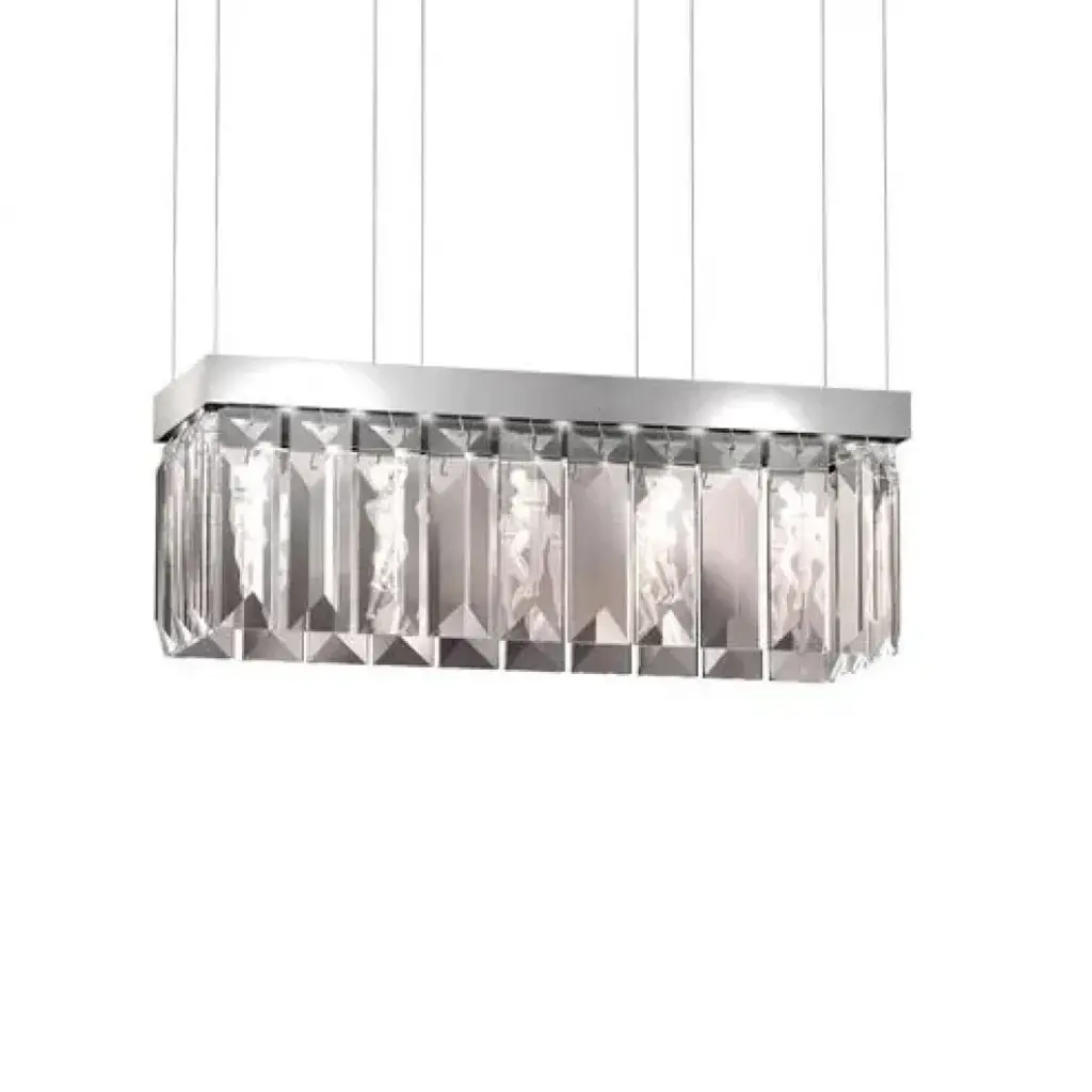 Light source: 4 x E27 (US E26) / 6 x E27 (US E26) / 9 x E27 (US E26) / 12 x E27 (US E26)/ 23 x E27 (US E26) / 40 x E27 (US E26) halogen energy server - 4 x E27 (US E26)/ 6 x E27 (US E26)/ 9 x E27 (US E26)/ 12 x E27 (US E26)/ 23 x E27 (US E26) / 40 x E27 (US E26) LED bulbs.Enclosed in mysterious geometrical structures, imagination is at last set free to express itself through a ray of sun. Cristalli by Patrizia Volpato is an exciting challenge in which these creations seek an indissoluble link between the reign of magic and our spirit. The light is split to give life to a myriad of forms which offer precious breaths of energy.Available finishes: Polished chrome, shiny 24 carat gold. Available glass colors: Transparent V1, Aquamarine V9, Red V7, Amber V6, Pink V3, Smoke V10, Bronze V11.