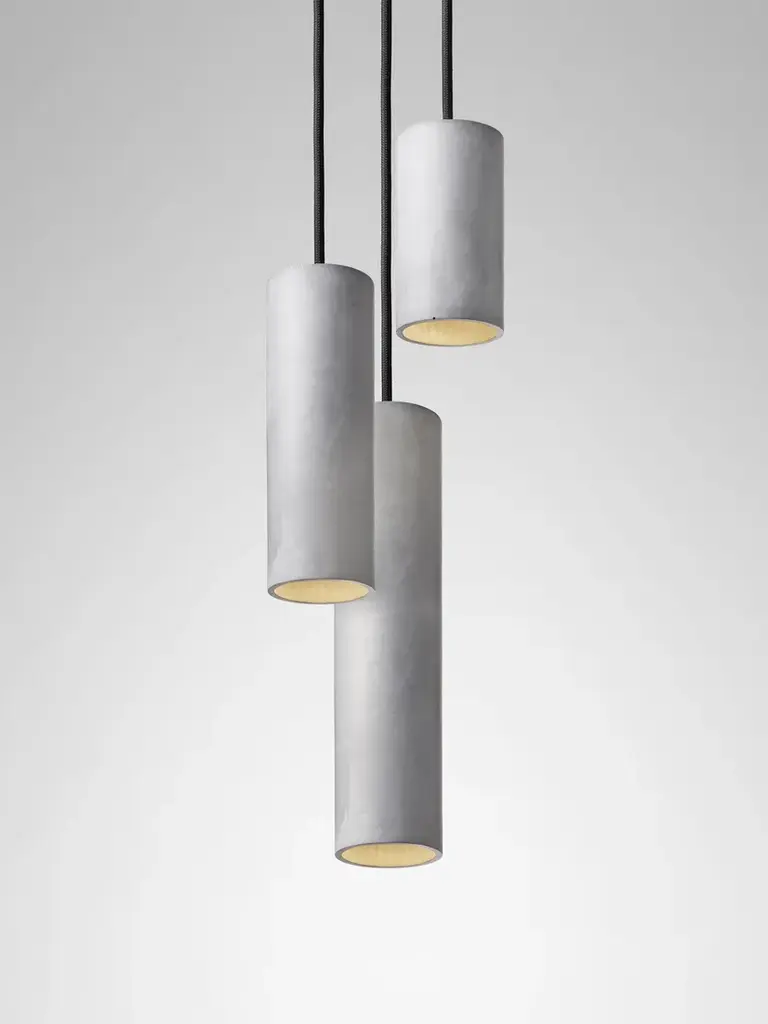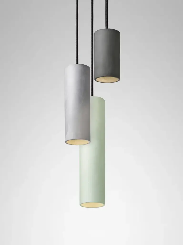 Cromia Trio is a composition of three handcrafted concrete cylindrical lights with different heights: 13, 20 and 28 cm. The pendant lamp can be customized by choosing a different color for each of the three elements, with the result of infinite combinations of colors.CROMIA Trio pendant lamp provides a high quality light, ideal for multiple uses in private and public spaces.CROMIA is a minimalist collection of lamps available in twelve different colors. Plato Design peculiar ultra-thin concrete is proposed in different colors to fit in every room.CROMIA lamps are designed and handmade in Italy in our workshop in Rome. We meticulously check the quality of materials to offer a unique reliable and durable product.• MATERIAL: concrete• DIMENSIONS: diameter 14 cm - height 13, 20 or 28 cm• CABLE LENGTH: 150 cm (59 inches) adjustable• BULB: 3 x G10 max 8W LED 90/250 V - 50/60 Hz / US and Canada wiring available• DIMMABLE: yes depending on bulb• WIRING: hardwired• USE: for indoor use only• AVAILABLE COLORS: each of the three lights is available in 12 colors.Light bulbs not included. We recommend to use GU10 LED bulbs.The product might vary slightly from the picture due to the nature of being 100% handmade.14 x 14 x 28 cmhttps://shop.platodesign.it/products/cromia-trio-concrete-pendant-lampK4pendant lamp, concrete light, minimalist light, customizable lamp, coloured lamp, handcraftedConcrete, colored pigments, water, light, experience and passion. Each Cromia is born from these ingredients, worked by hand in Italy. The bubbles and the surface veils tell of the material and its craftsmanship, while the unexpectedly reduced thickness and the extraordinarily non-grey appearance are the result of the desire to innovate. The collection includes wall, suspension and ceiling lamps recognizable by their pure shapes and their vast range of colors: white, light grey, grey, dark grey, brown, burgundy, dove grey, ivory, pink, yellow, light blue and sage green. The range of models and colors proposed makes it possible to create infinite possibilities and customizations to adapt to each project.
