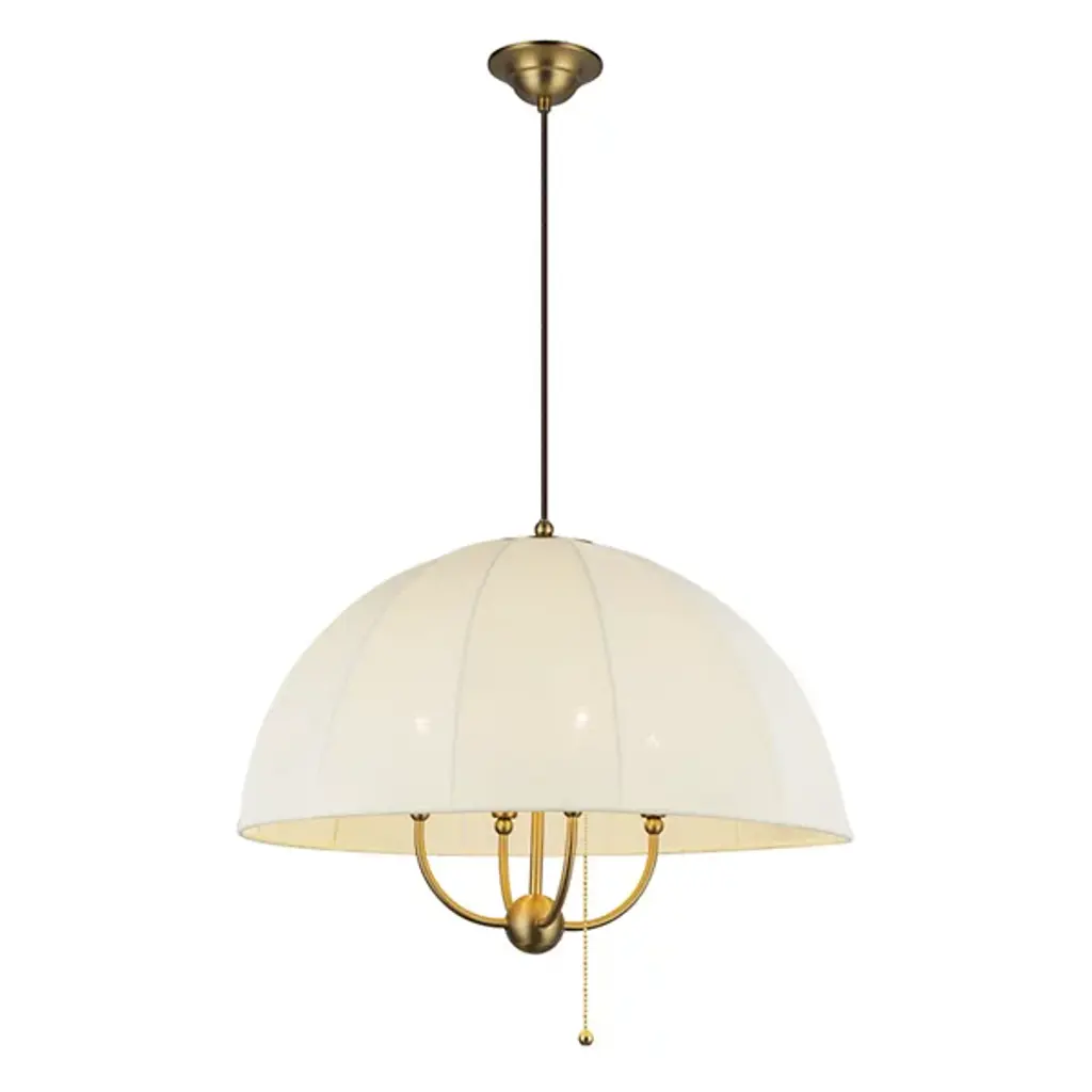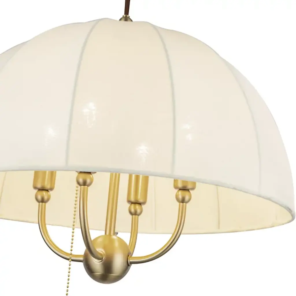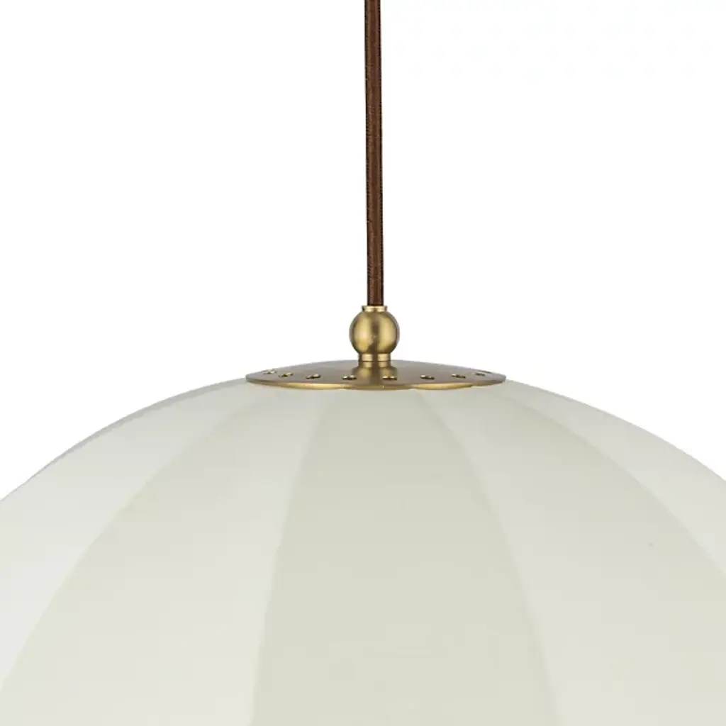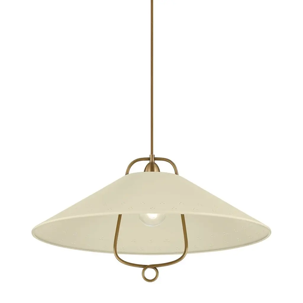 The Crosby Pendant from Alora Mood floats overhead like an umbrella of light, softly diffusing a warm glow through its natural fabric dome shade. Designed by Kelsey Leigh, this transitional fixture features a slim cable suspension system inspired by traditional parasols that lends a weightless feel to its gently layered form. Short, slender steel arms add structure inside the shade, while a chain pull switch adds a subtle vintage detail. The design balances nostalgic inspiration with modern simplicity, casting a generous glow and bringing charm and atmosphere to any open living space.