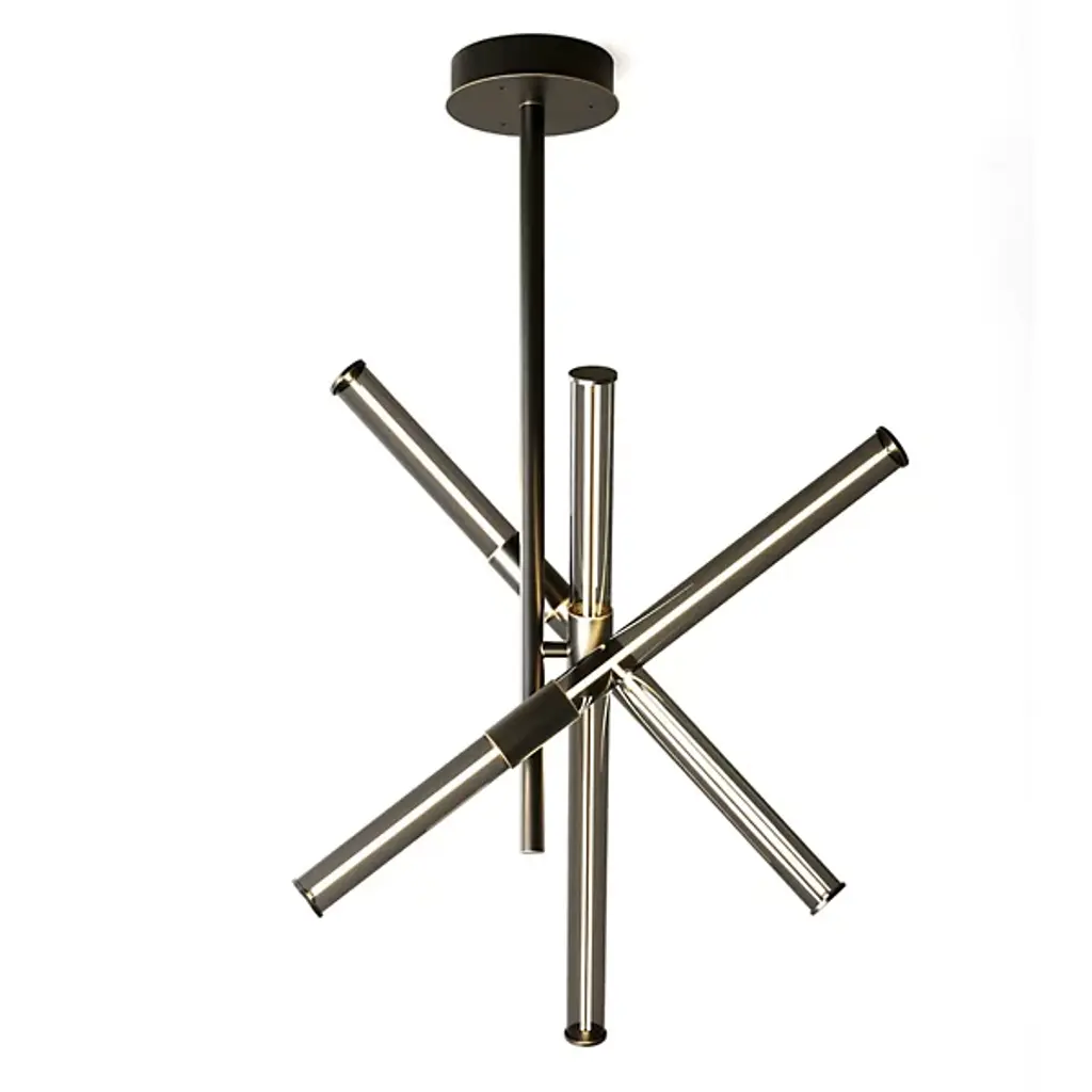 Living up to its name, The Cross LED Pendant from Venicem features cylindrical, streamlined metal frameworks that intersect in midair. This fixture is made in Italy and boasts superb craftsmanship, represented by the intricate banding details along the frames. The Cross is illuminated by an integrated LED. With a separately sold TRIAC dimmer, you can control the ambiance for a gentle glow. Your durable pendant is secured by a ceiling canopy and is a testament to ultra-modern and contemporary aesthetics.