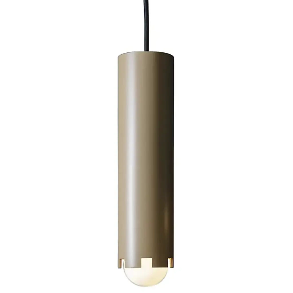 The Crown Mini Pendant from John Beck Steel features a straightforward look that can complement a wide array of settings. The cylindrical shade features subtle notches at the sides to allow light to shine through and add style without overembellishment. Handmade in the USA, the notches are laser-cut into eighth-inch aluminum for durable, long-lasting performance. The light is held at the bottom of the shade, half of it poking out from the notches to help illuminate the surrounding area.