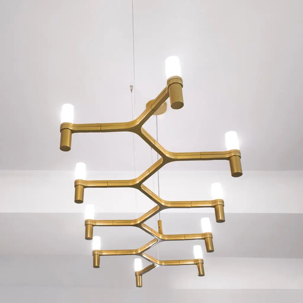 Nemo Lighting's Crown Plana Linea is a modern chandelier characterized by simplistic, industrial esthetics. Designed by the design team of Marcus Jehs and Jurgen Laub, the chandelier is inspired by the shape of a snowflake, with the candles replaced by 12 LED light sources covered by sand-blown opal glass diffusers. The Crown pendant chandelier is available in a range of sizes – Crown Plana Linea is a lower version of the luminaire. With a diameter of nearly 23.62 x 0 in (60 x cm, cm), the beautiful yet simple luminaire creates an elegant ambience in any room and catches the eye even in a large and open space. The lamp's 98.43 in (250 cm) transparent cable can be lowered to just about any height you wish, making the lamp perfect to be placed over a dining table, for example. Please note that the bulbs are not included but available separately in sets of 6.
