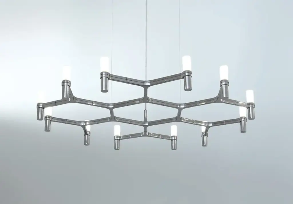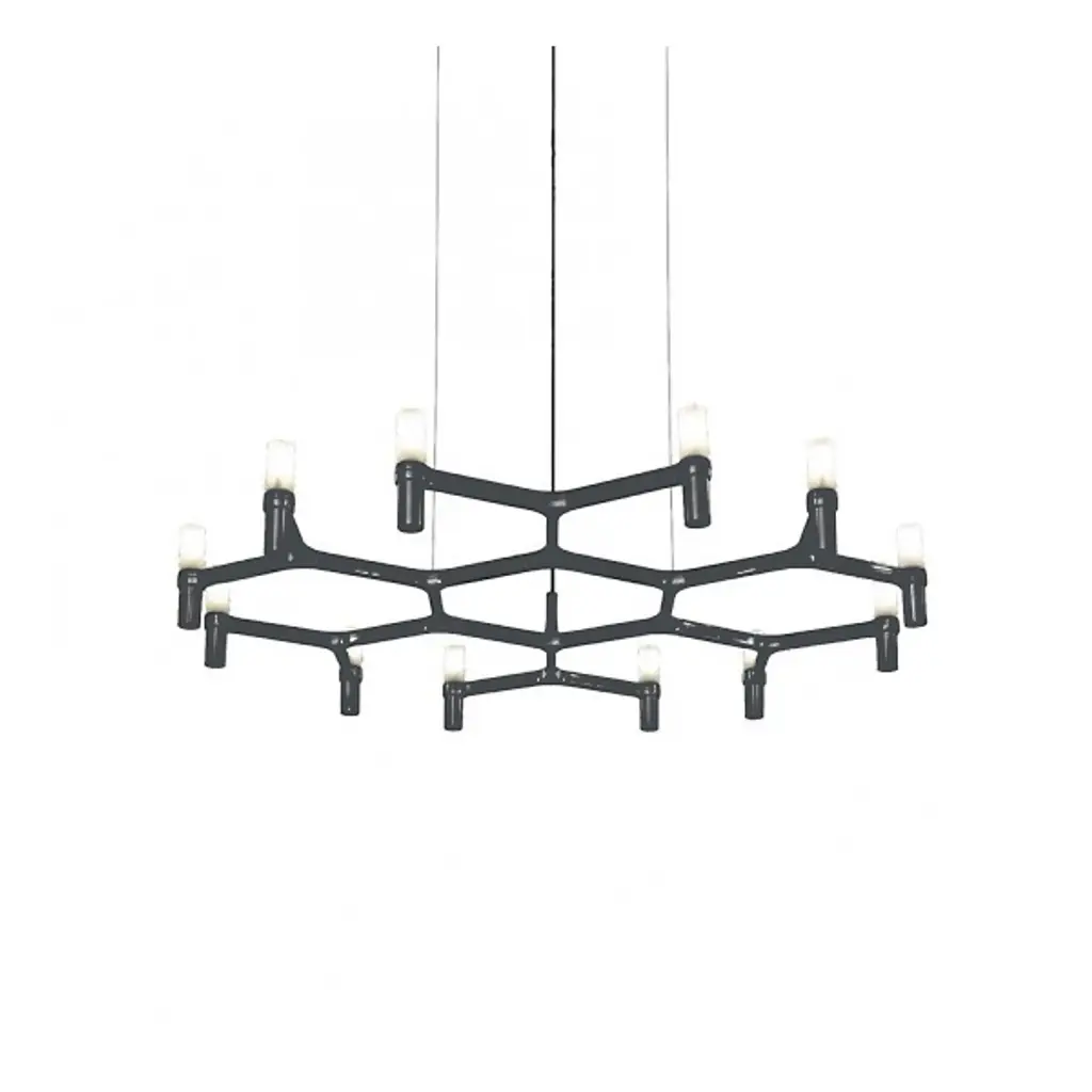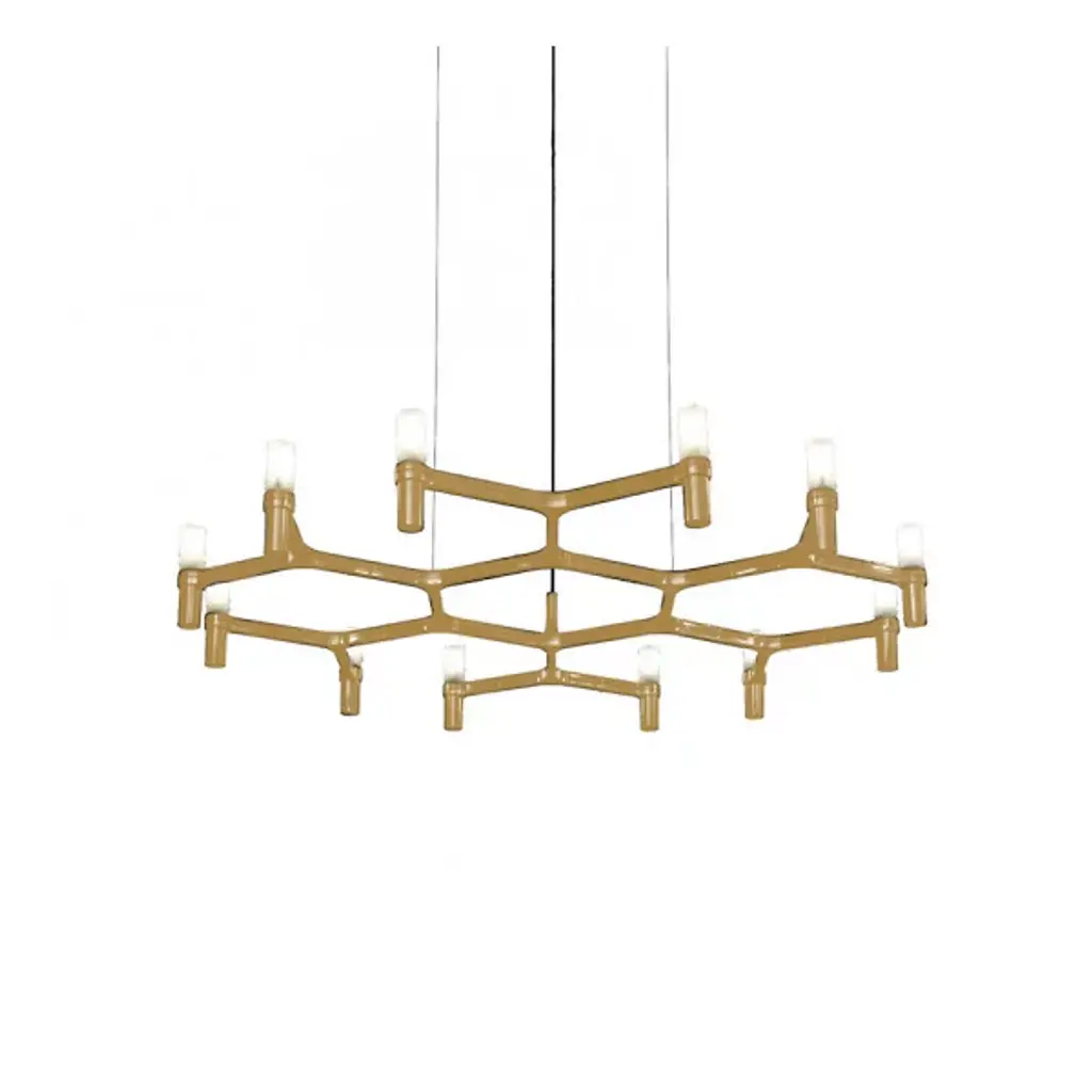 CROWN PLANA MINOR is an aluminium chandelier. Structure is available in different versions hand polished aluminium, glossy gold plated or black plated, painted in matt white, matt black, or matt gold. Widespread light.Available a NEMO LED G9 kitLED/HALOSource halopin G9 QT-14Total power 12x25WEmission diffusedSwitching dimmable, according to bulbTension110/230VFamily composed by pendant chandeliers whose shape is inspired by the outline of the snow crystal. Modular lamps realized with a die-casted aluminium structure and sandblasted glass diffusers. Double switch for the Summa and Magnum versions. The pendant versions are equipped with transparent cable.Available a NEMO LED G9 kit