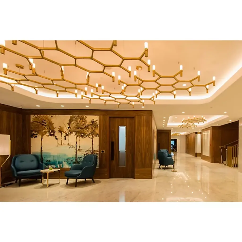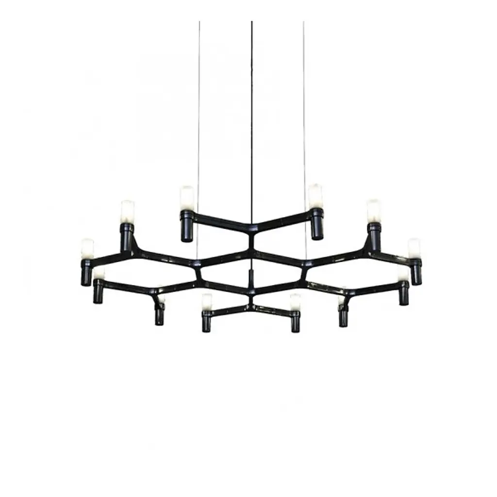 The Nemo Crown Plana Minor Suspension compresses the look of a tiered chandelier, placing 12 light sources at the ends of a linear, modular structure like a beehive. The rounded symmetry and gentle ambience is pleasing when viewed from below, displaying a soft yet powerful illumination. The suspension has a small enough radius to place the Crown above smaller dining areas or can be a classy addition above a kitchen island. While available in multiple finishes, the Gold finish is sold exclusively at Lumens.