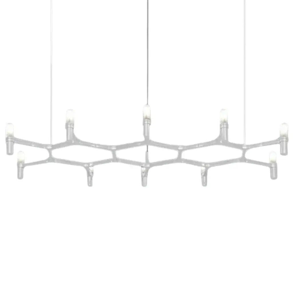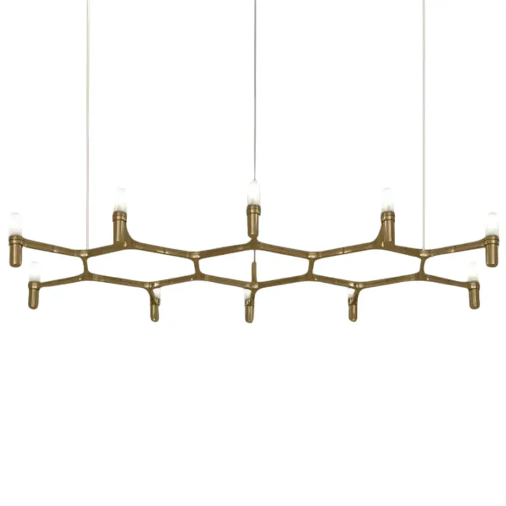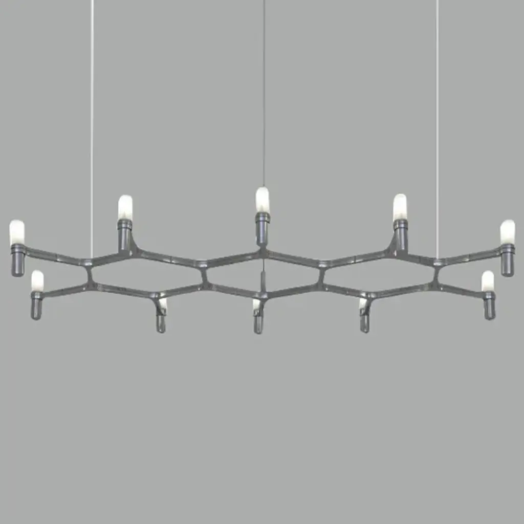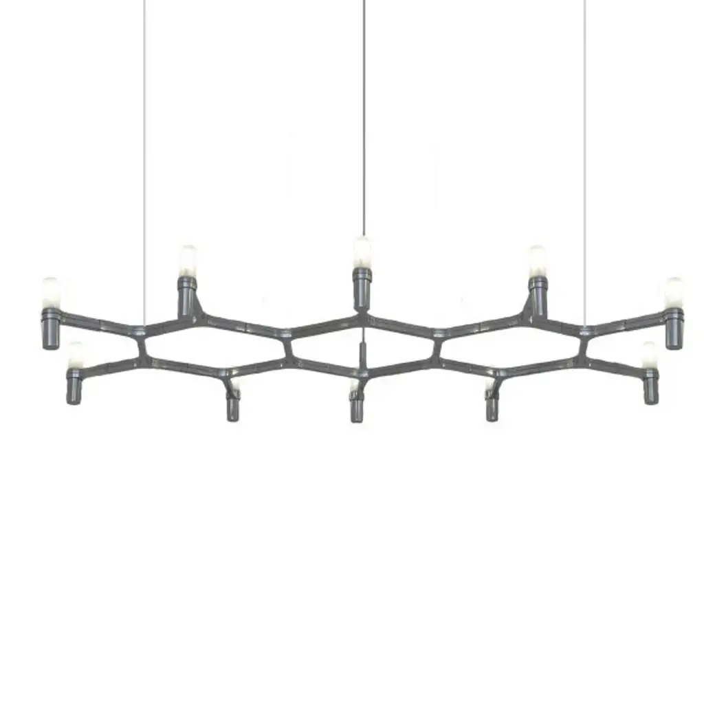 Pendant chandeliers designed by Jehs + Laub, with modular structure in die-casted aluminum and sandblasted glass diffusers. Structure in hand polished aluminum, glossy gold plated, black plated, or painted in matte white, matte black or gold. Widespread light. Shipped with transparent cable. Features