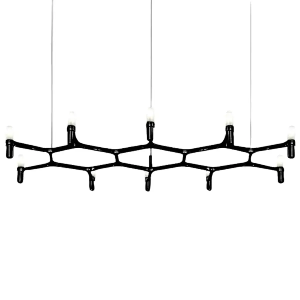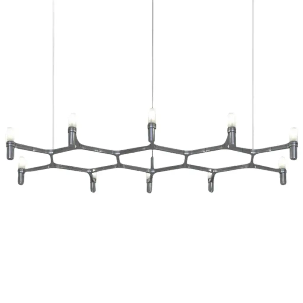 Pendant chandeliers designed by Jehs + Laub, with modular structure in die-casted aluminum and sandblasted glass diffusers. Structure in hand polished aluminum, glossy gold plated, black plated, or painted in matte white, matte black or gold. Widespread light. Shipped with transparent cable. Features