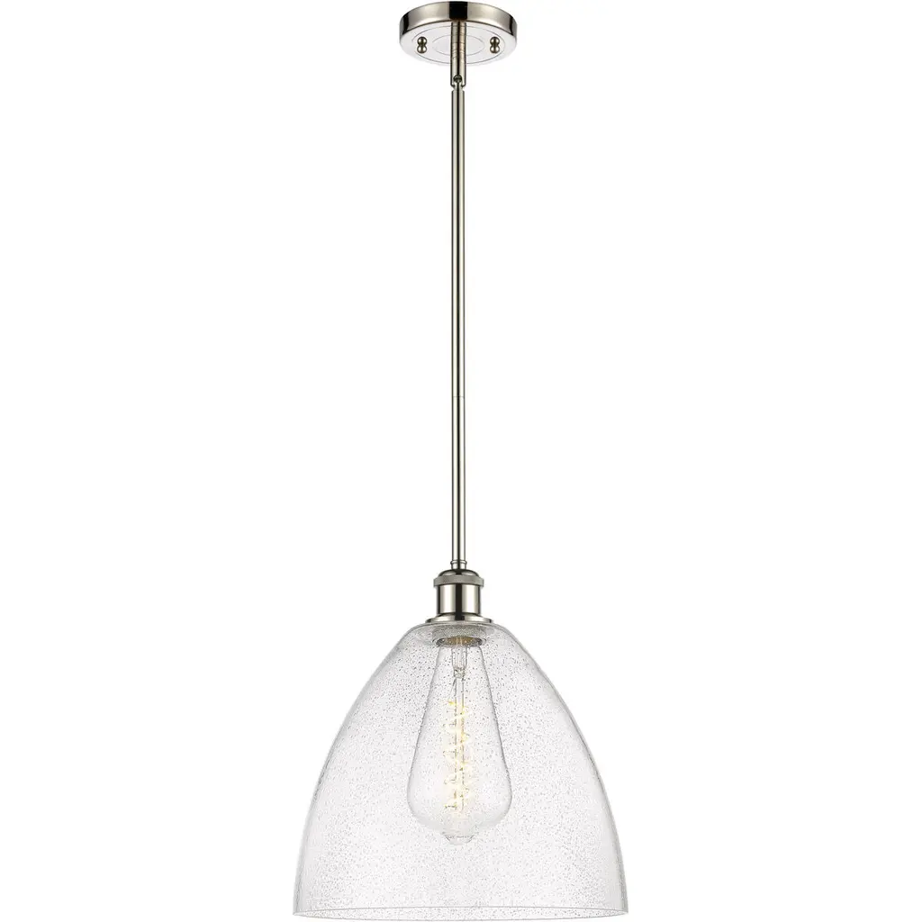 Crown Point 1 Light 12 Inch Polished Nickel Pendant Ceiling Light In Seedy Glass