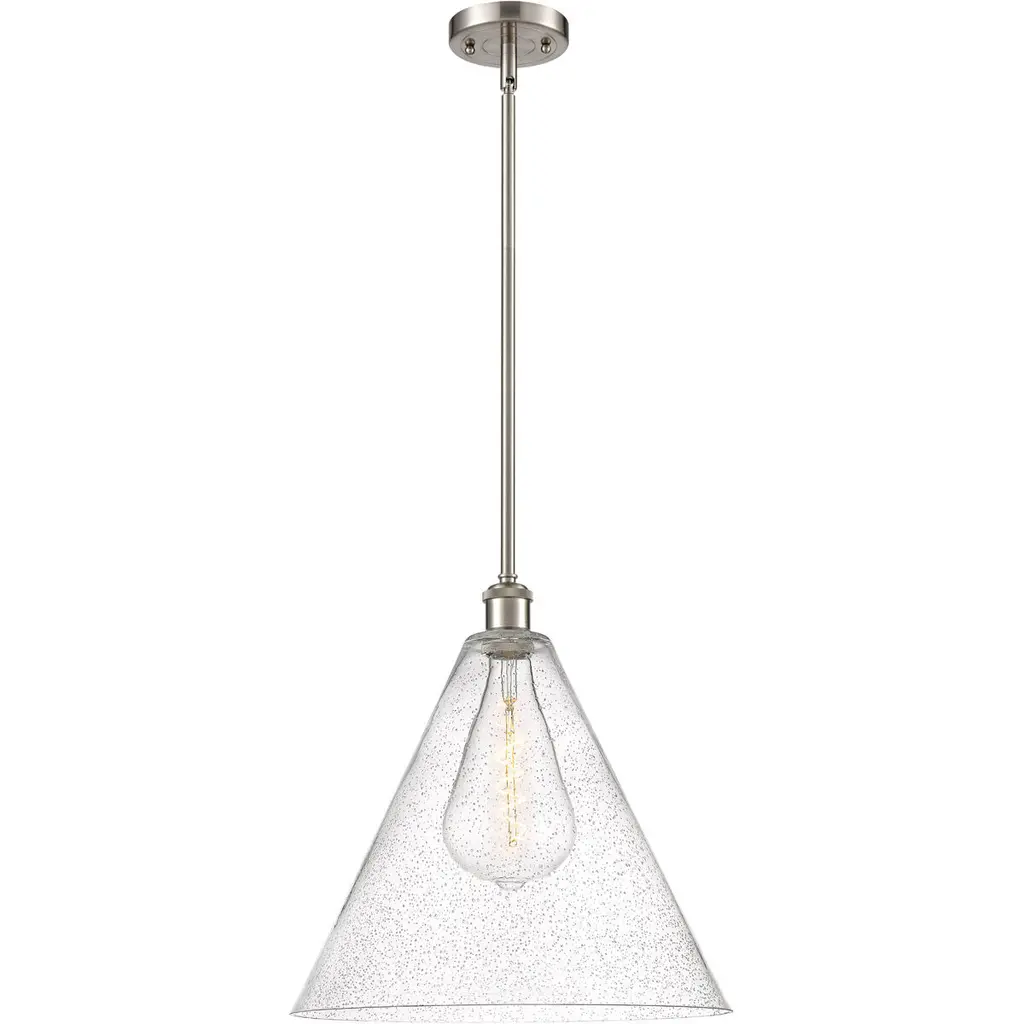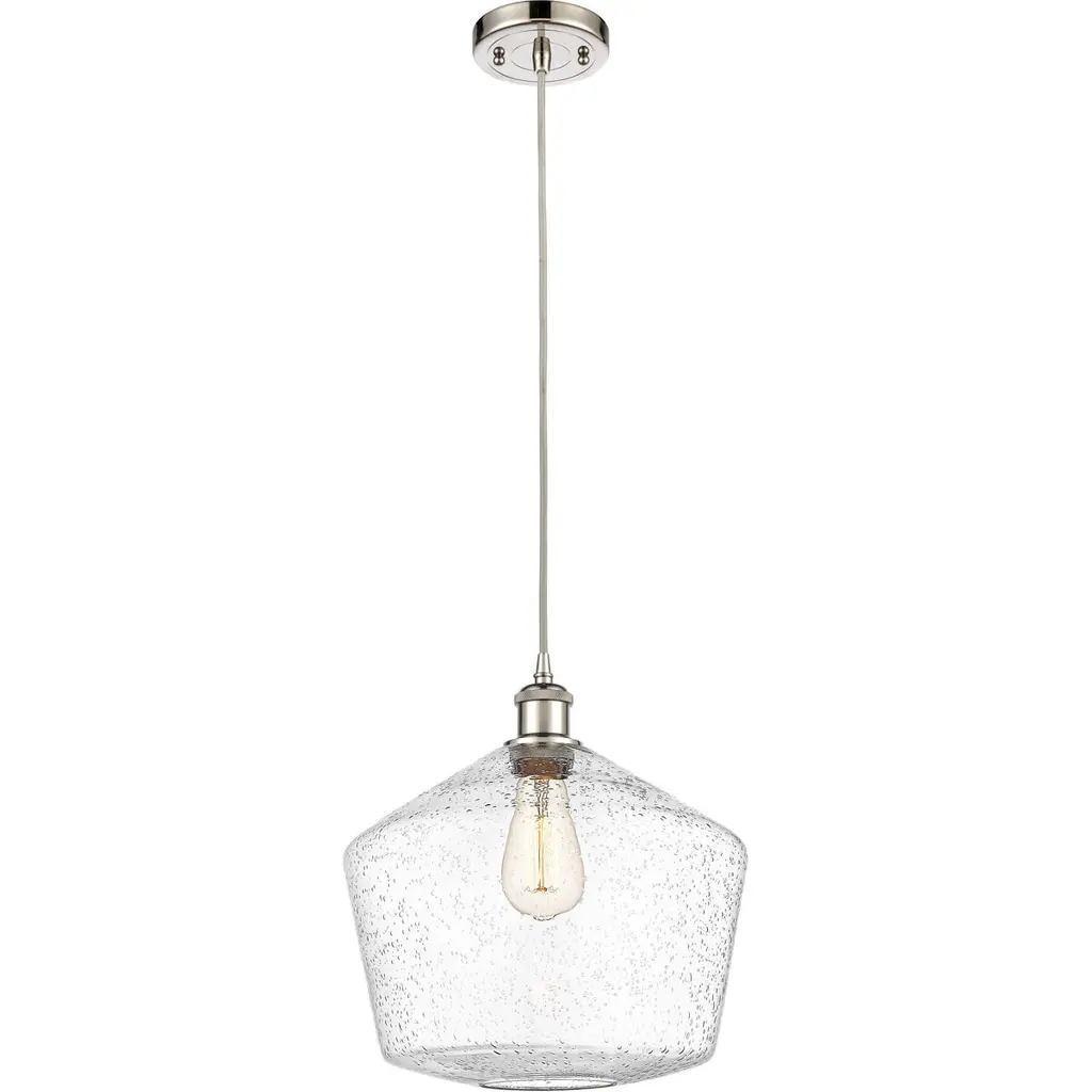 Crown Point 1 Light 12 Inch Polished Nickel Pendant Ceiling Light In Seedy Glass