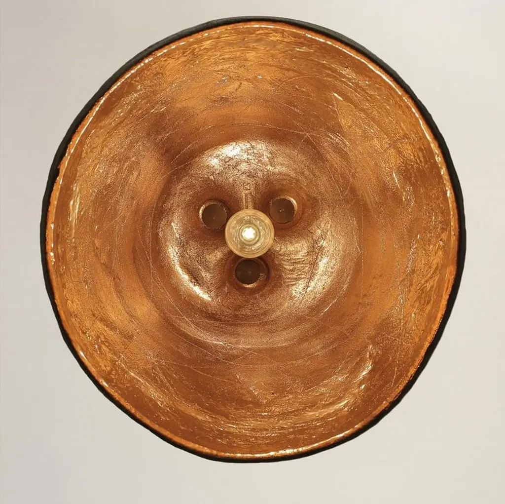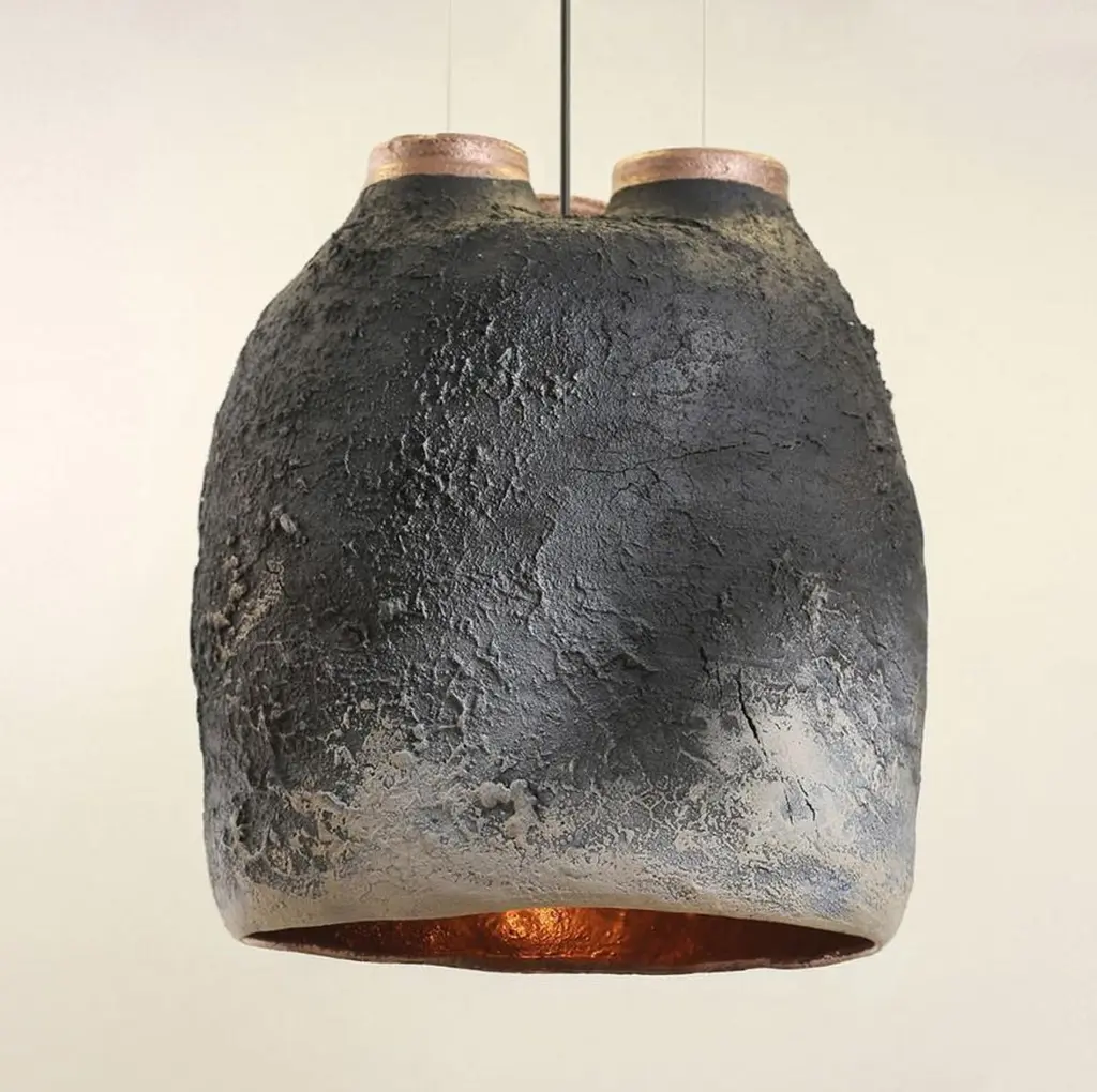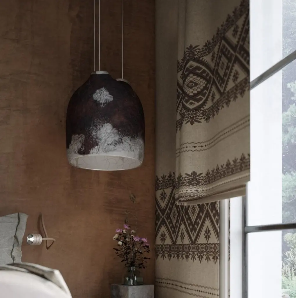 Crust thick pendant lamp by MakhnoDimensions: D 42.5 x H 46.5cm Materials: CeramicsThe three Crust brothers crack in art. The unique perennial burning technique gives birth to deep textured authors cracks. You never know how nature will behave this time. They share the same materials and color array. Yet, they are different inside. Thin is the oldest Crust brother with a passionate copper inside. It is a high-browed snow mountain coated in the iron sky.Makhno Studio is a workshop of modern Ukrainian design and architecture. We work in Ukrainian contemporary style. According to international experts, this style will change the Scandinavian on the world design stage.Since 2003, we have been creating projects intertwining Ukrainian traditions, world trends and the Japanese philosophy of wabi-sabi, the forces of nature, human talent and architectural mind. We have completed over 600 projects in 21 countries and are ready to create something significant for you.The main task of our specialists — architects, designers, ceramists — is to create comfort that will become near and dear. All our lamps can be wired according to each country. If sold to the USA it will be wired for the USA for instance.