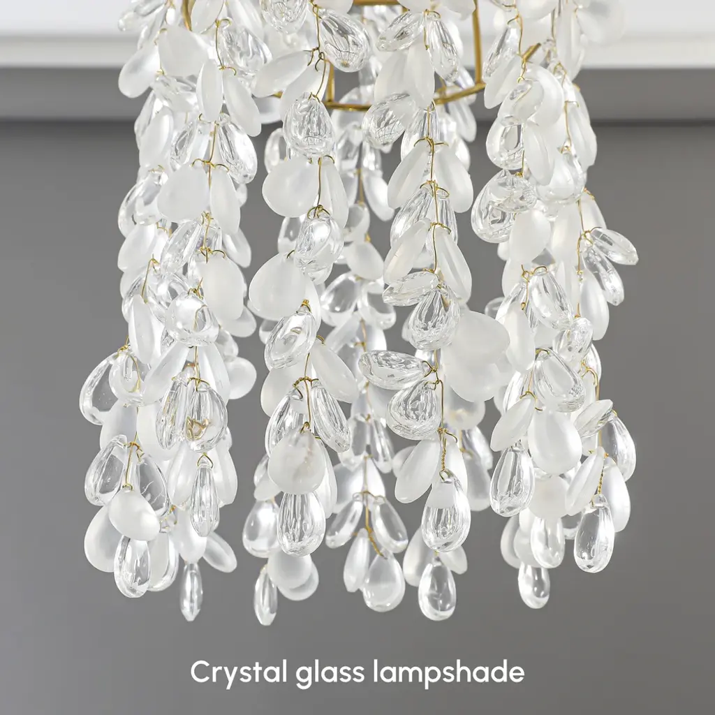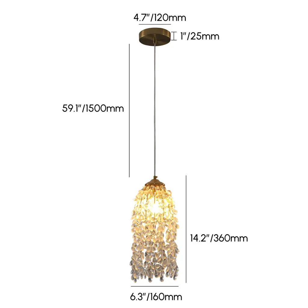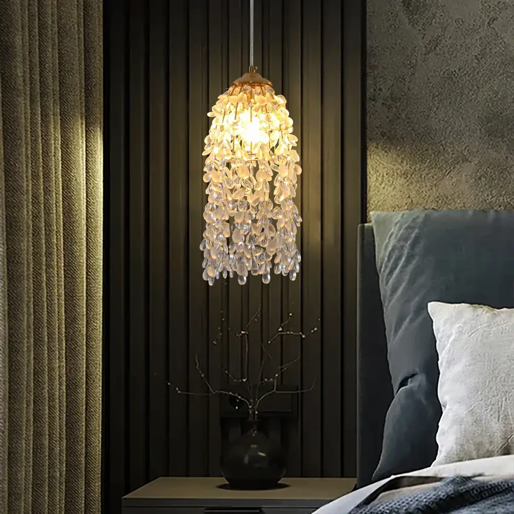 Add a touch of elegance to your space with this crystal pendant light. Featuring cascading crystal droplets and a sturdy iron frame, it creates a warm, inviting glow perfect for bedrooms, dining rooms, or entryways. The refined design enhances any modern or classic decor style.