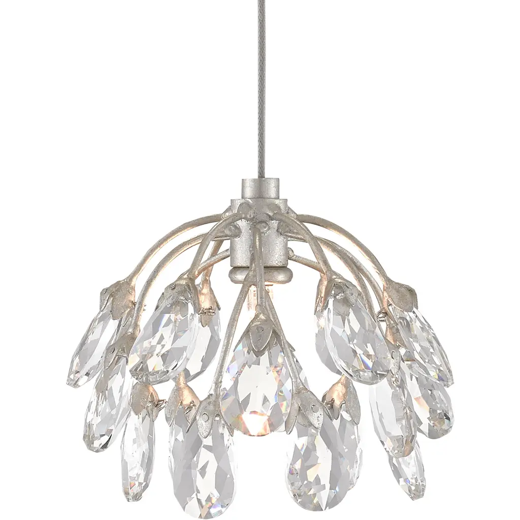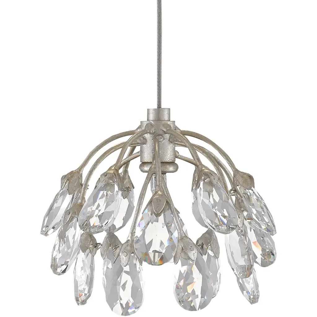 The Crystal Bud Rectangular 15-Light Multi-Drop Pendant dangles flowers made of delicate faceted crystals from its canopy to make the shades effervescent and graceful. The silver pendant is luminous in its mix of painted silver and contemporary silver leaf finishes. This fixture is among Currey & Company’s introduction of cluster lights, which includes 1-light up to 36-light configurations. We also have a number of chandeliers and orbs, and a wall sconce in this family of fixtures.